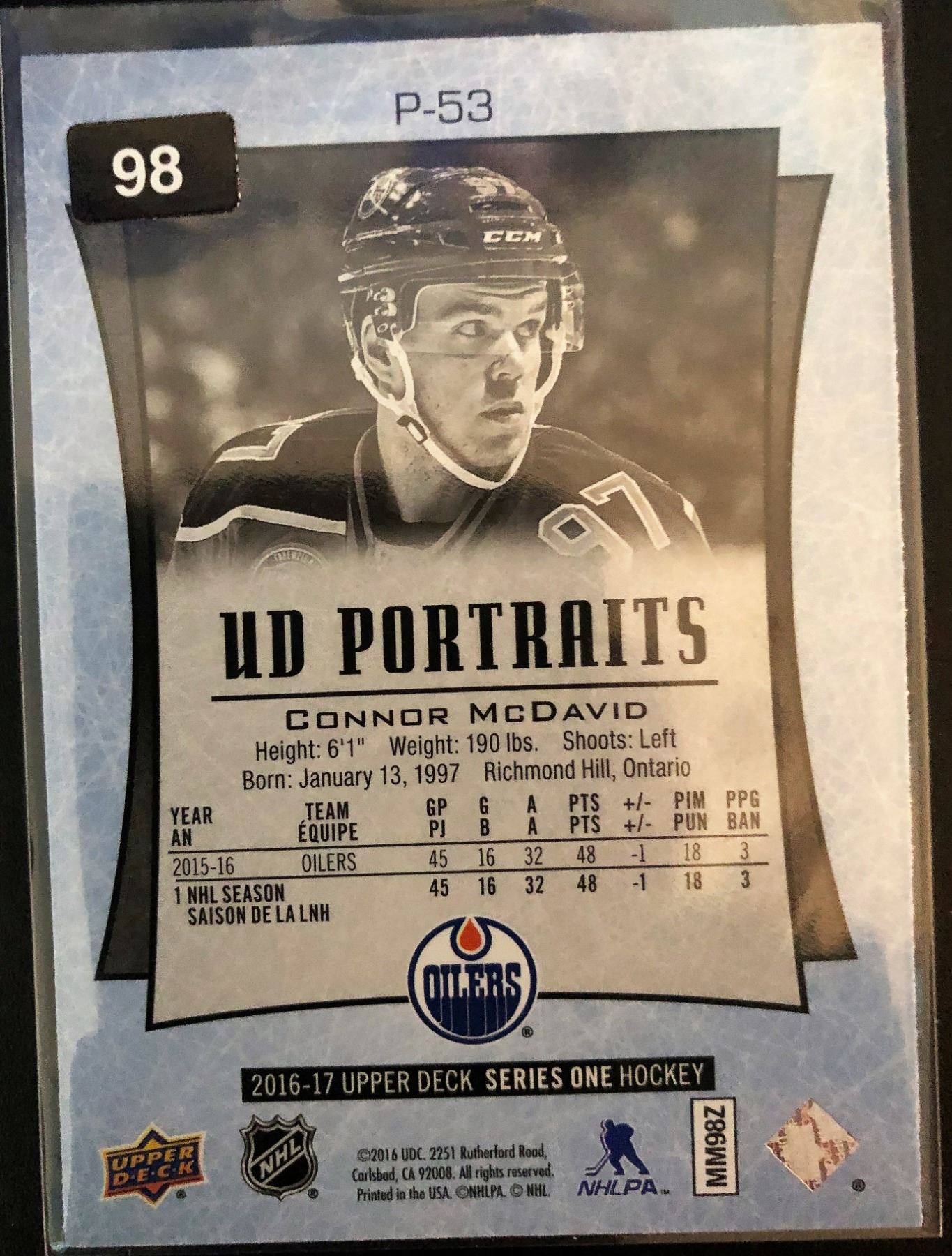 2016-17 Upper Deck Portraits Connor Mcdavid #P-53