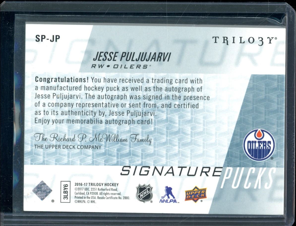 2016-17 Upper Deck Trilogy Signature Pucks #SPJP Jesse Puljujarvi BV $40