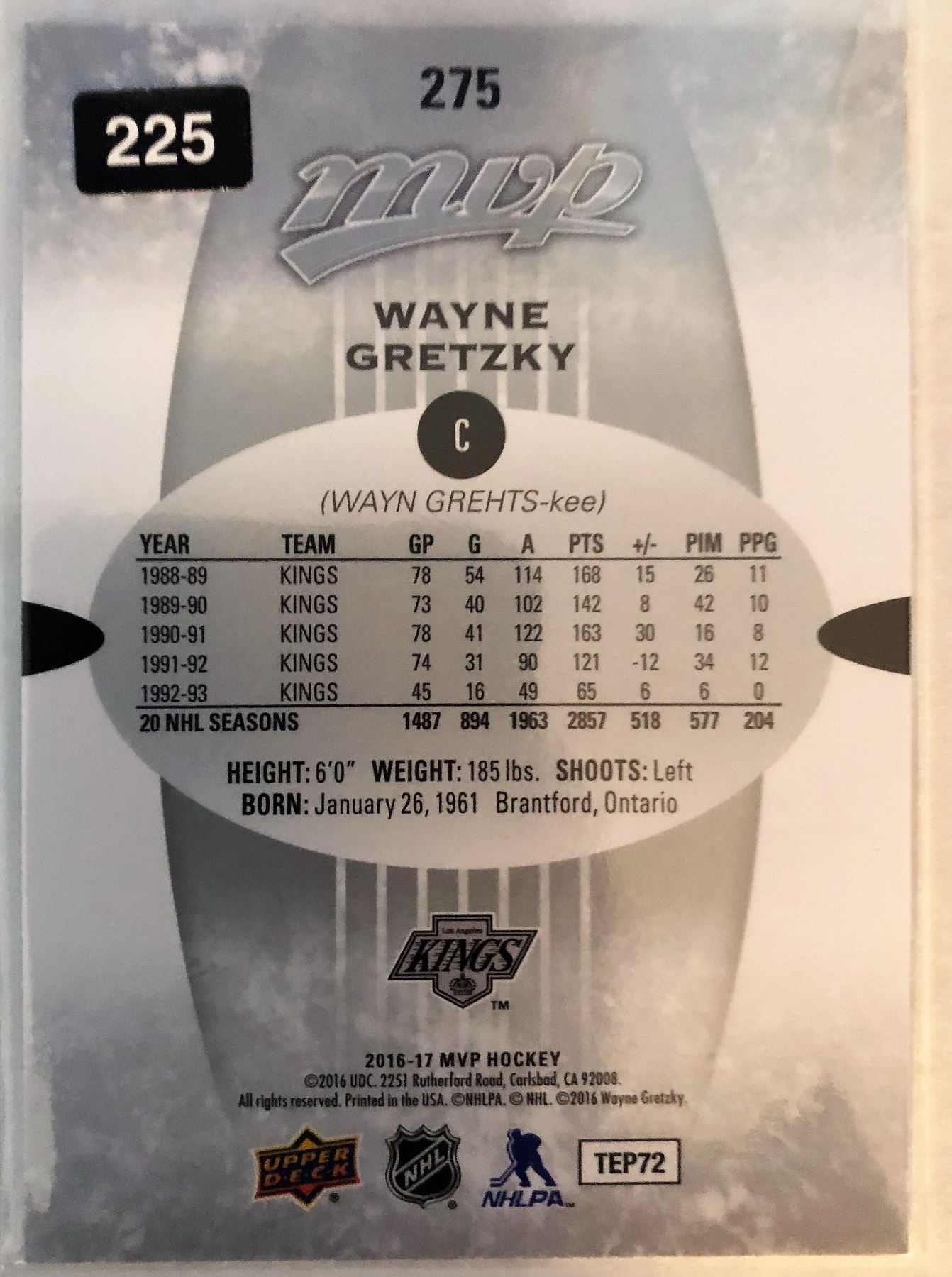 2016-17 Upper eck MVP Wayne Gretzky Silver Script #275