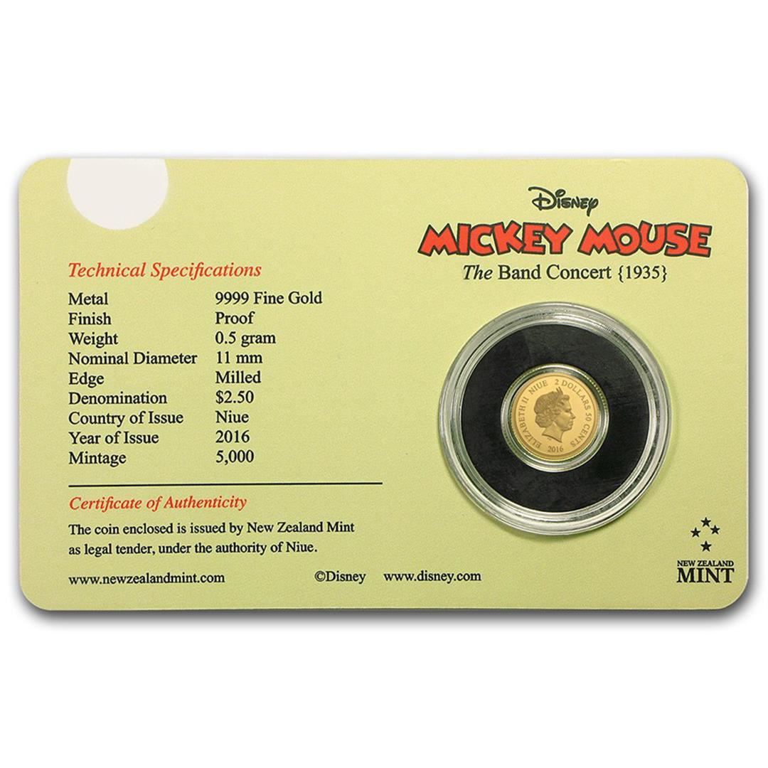 One 2016 $2 1/2 Mickey The Band Concert .9999 Fine Gold Proof Coin.