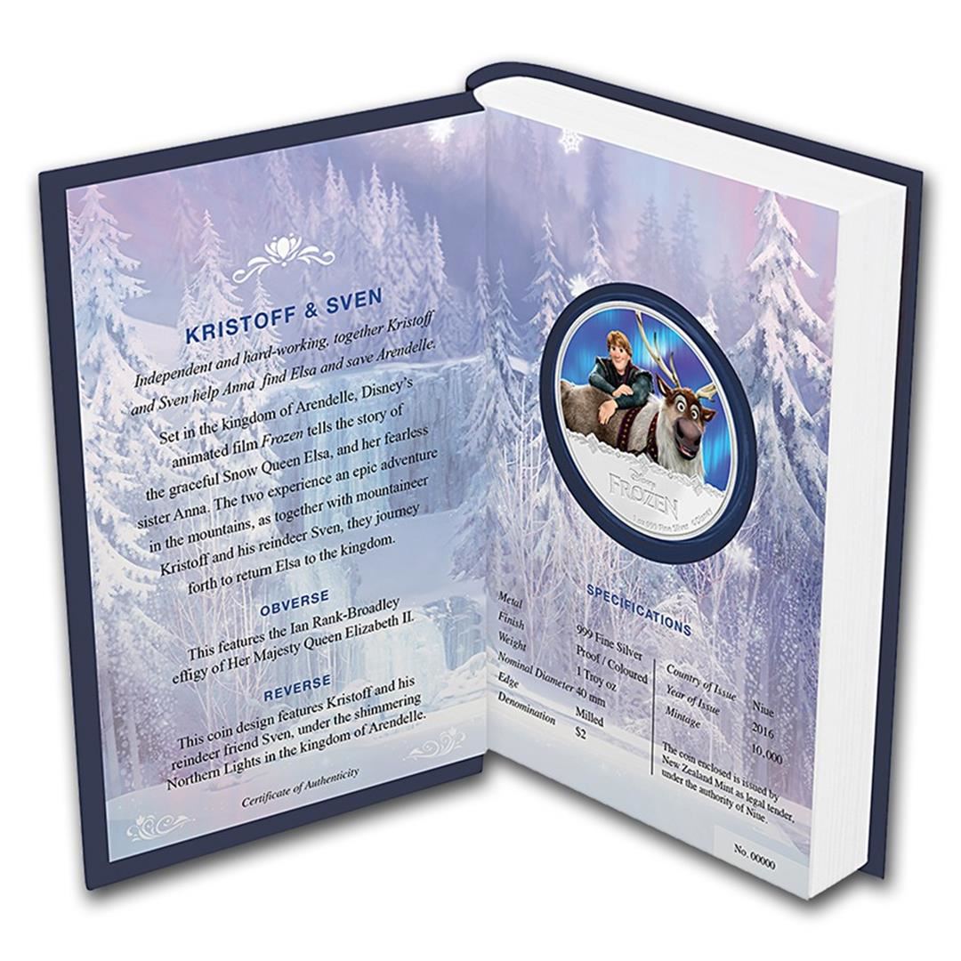 One 2016 $2 Disney Frozen Kristoff & SVEN .999 Fine Silver Proof Coin.
