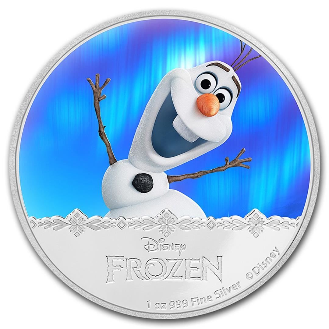 One 2016 $2 Disney Frozen Olaf .999 Fine Silver Proof Coin.