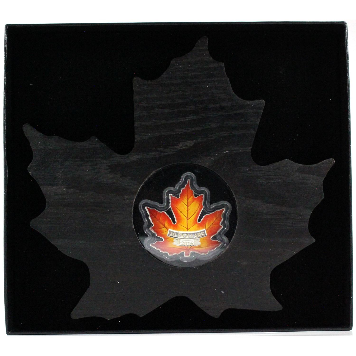 2016 $20 Canada's Colourful Maple Leaf Shaped Fine Silver Coin (Tax Exempt) protective case is scuffed.