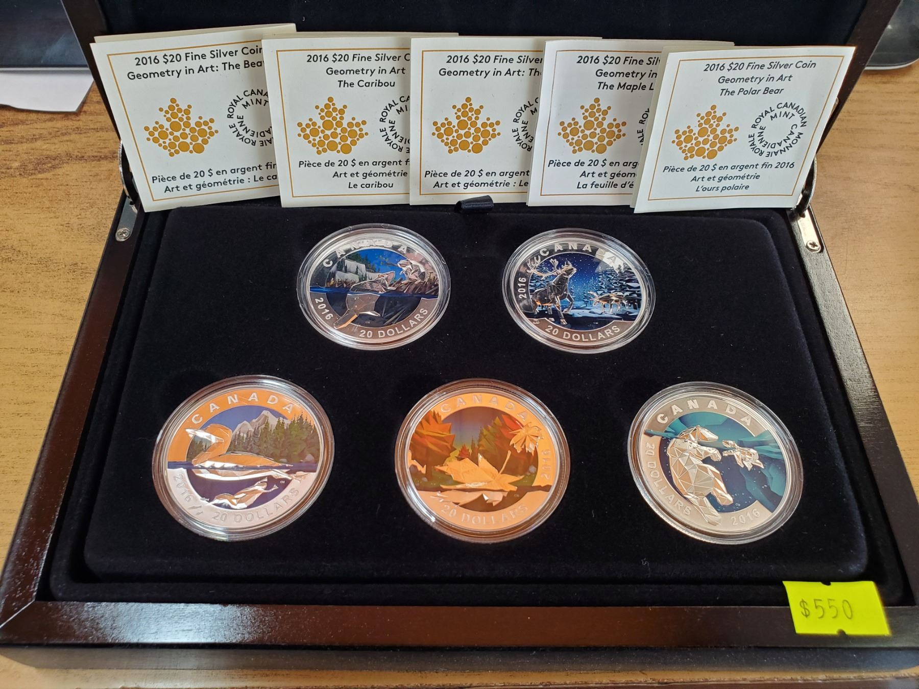 2016 $20 FINE SILVER COIN SET 'GEOMETRY IN ART' 5 COIN SET