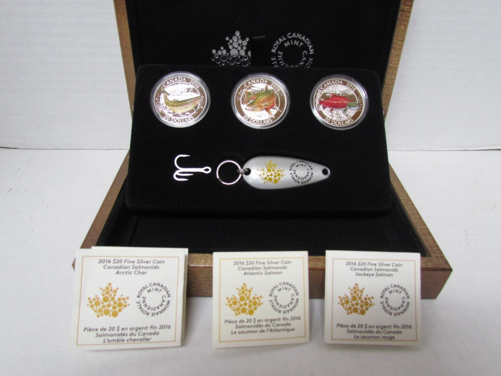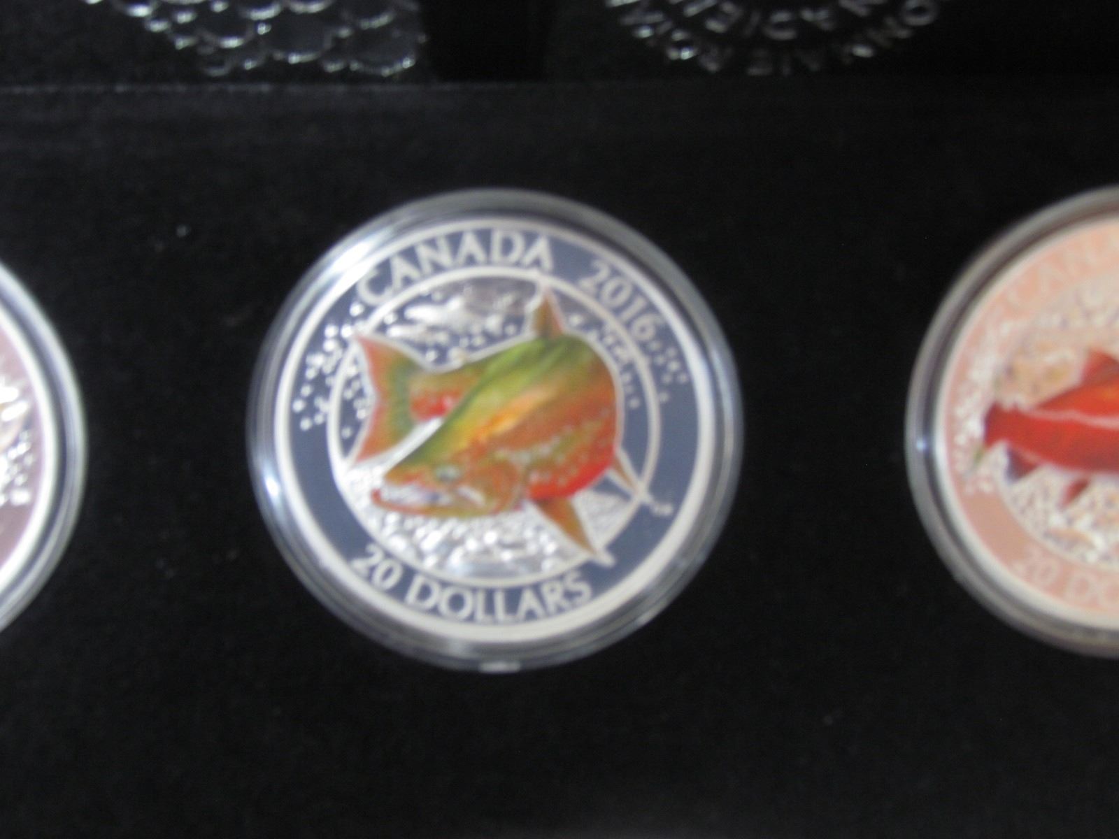 2016 $20 FINE SILVER COINS - SALMONIDS, COMPOSITION 99.9% PURE SILVER