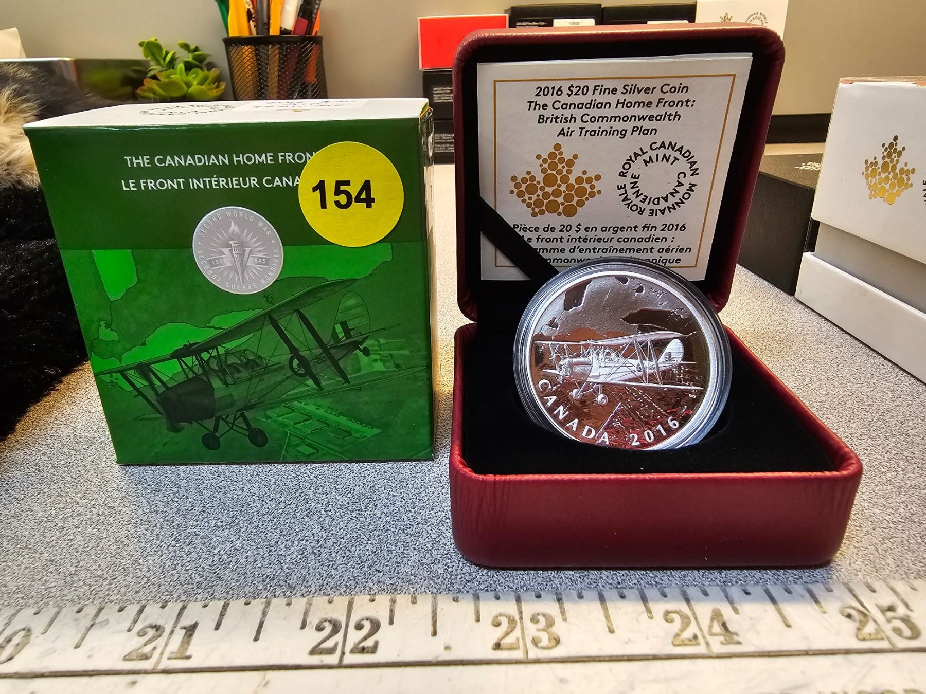 2016 $20 The Canadian Home Front: British Commonwealth Air Training Plan. Proof with Ultra Heavy Cameo. 99.99% pure Silver. Housed in its original Royal Canadian Mint case & box of issue, along with a Certificate of Authenticity.