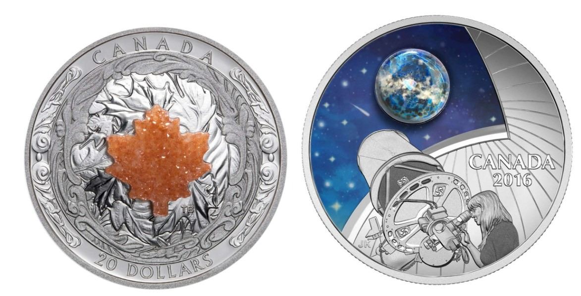 2016 $20 The Universe Glow-in-the-Dark Glass with Opal, 2016 $20 Majestic Maple Leaves with Drusy Stone - Pure Silver Coin. Lot