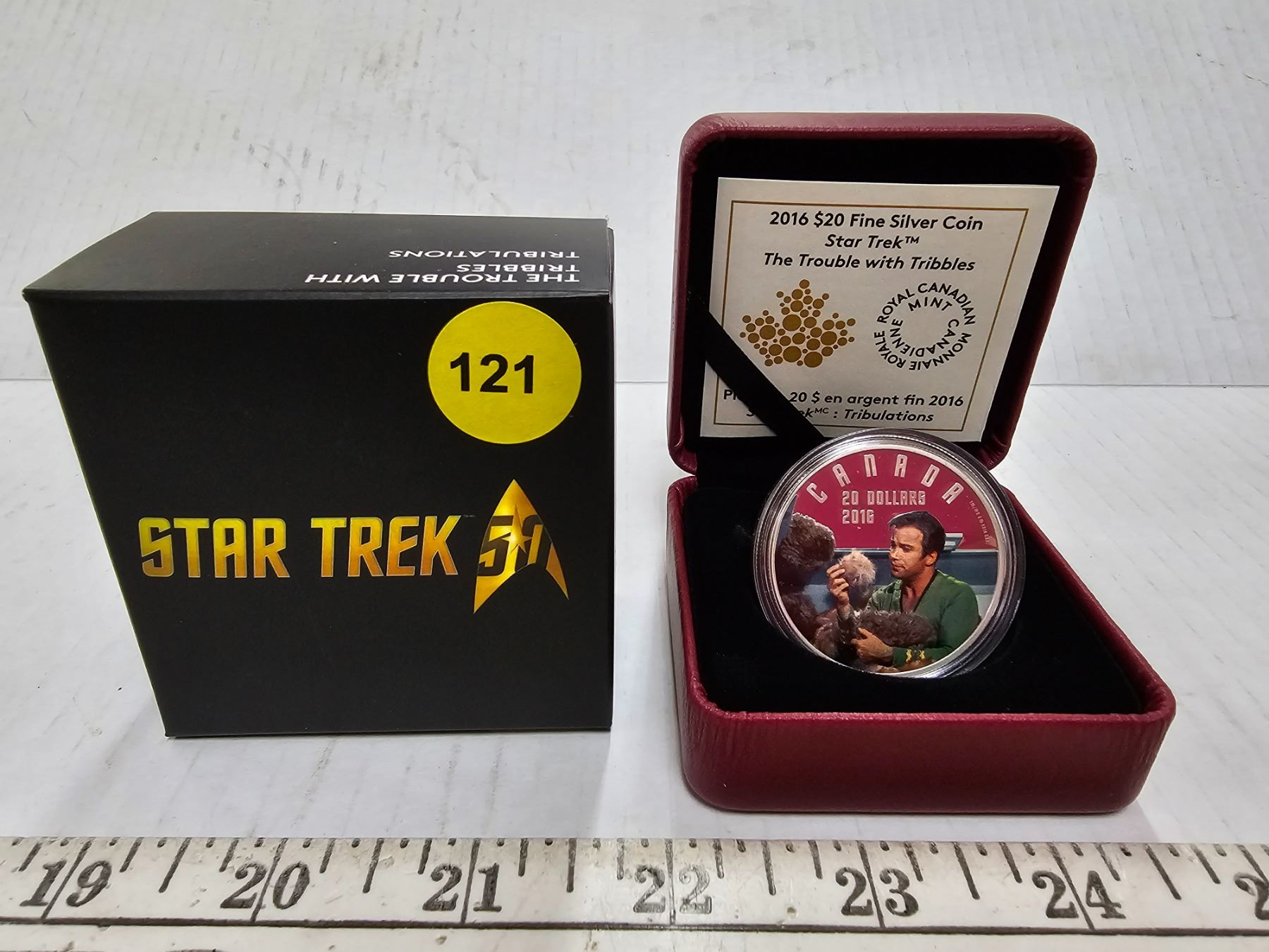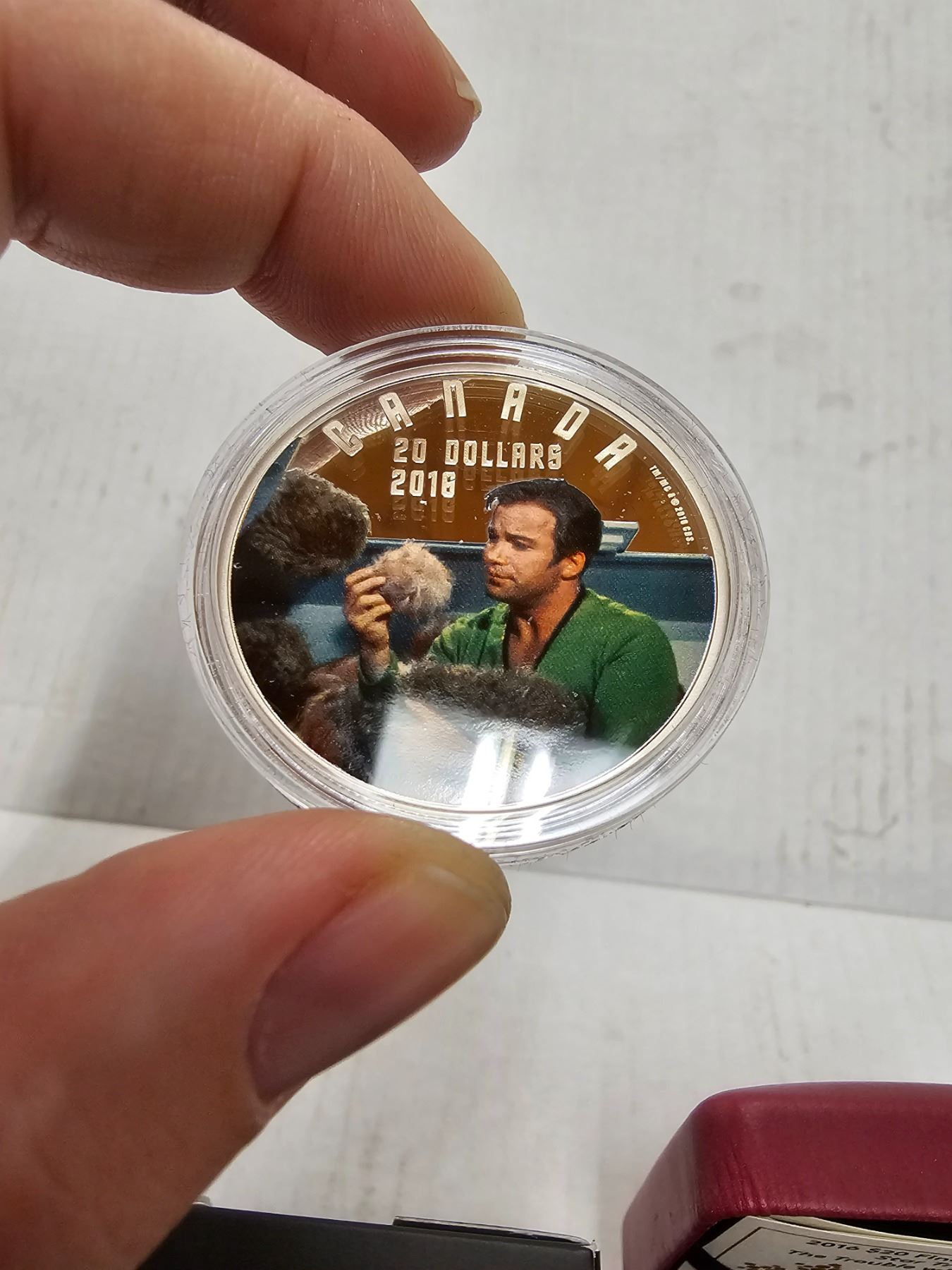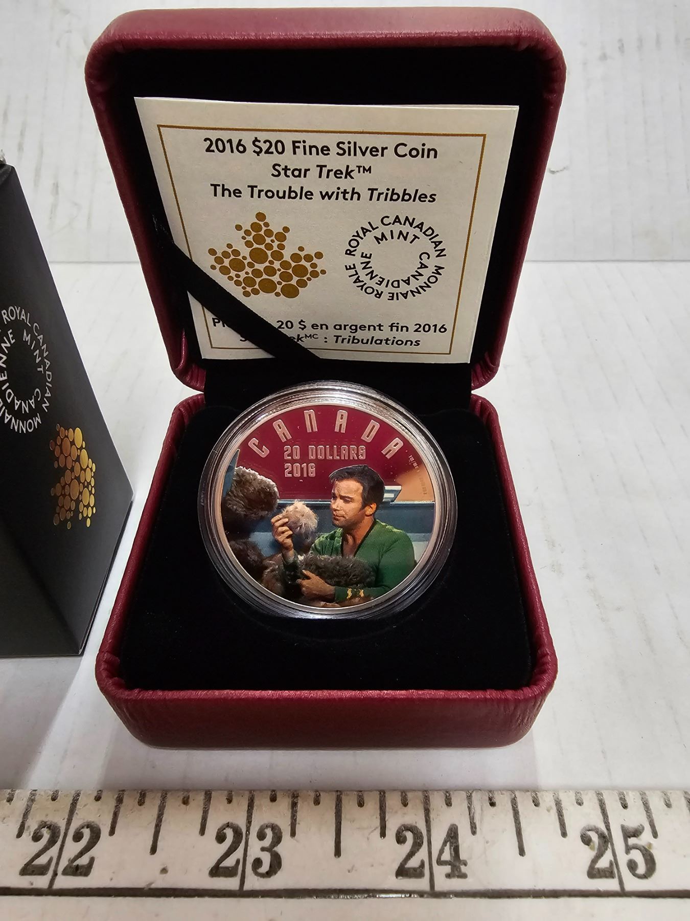 2016 $20 star trek: the trouble with tribbles. James T. kirk with triblles. Colourized proof with ultra heavy cameo. 99.99% pure silver. Housed in its origianl royal canadian mint case & box of issue, along with a certificate of authenticity