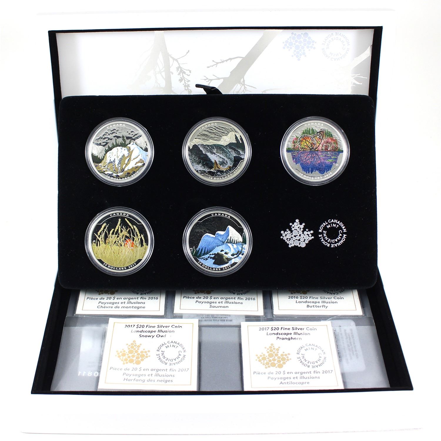 2016-2017 $20 Landscape Illusion 5-Piece Set of Fine Silver Coins with Selective Colour. Natural hues of rose and gold (Tax Exempt)