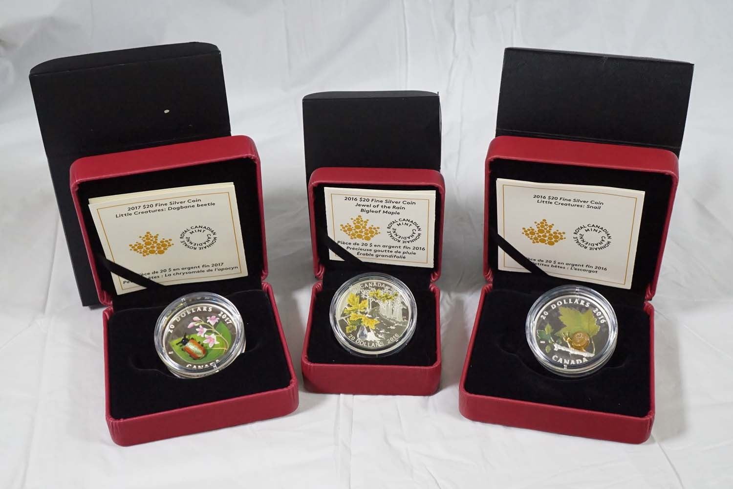 2016-2017 A Lot of 3 x $20.00 .9999 3.03 oz. AG w/COA, Box and Sleave