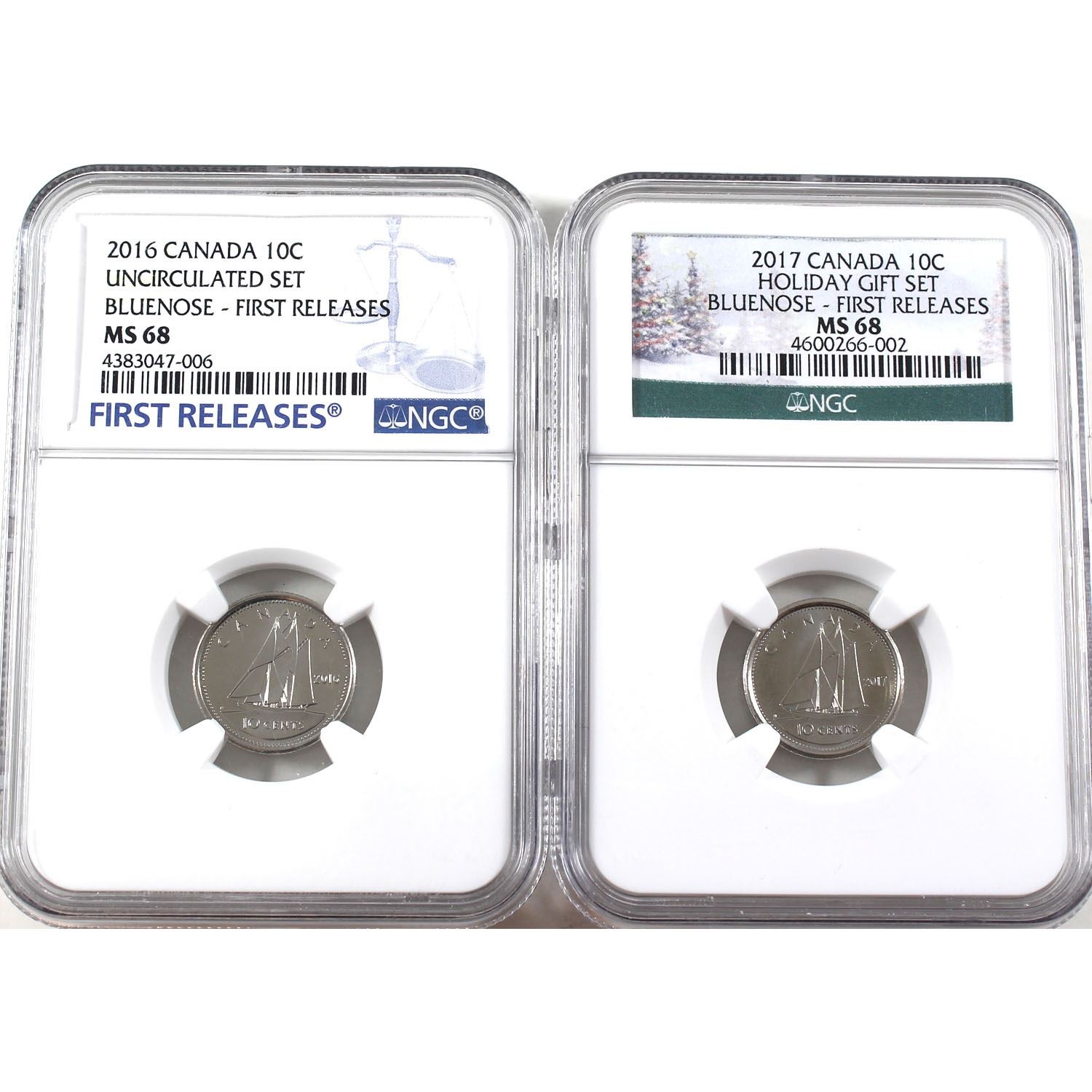 2016 & 2017 Canada 10-cents NGC Certified MS-68. *First Releases* 2pcs