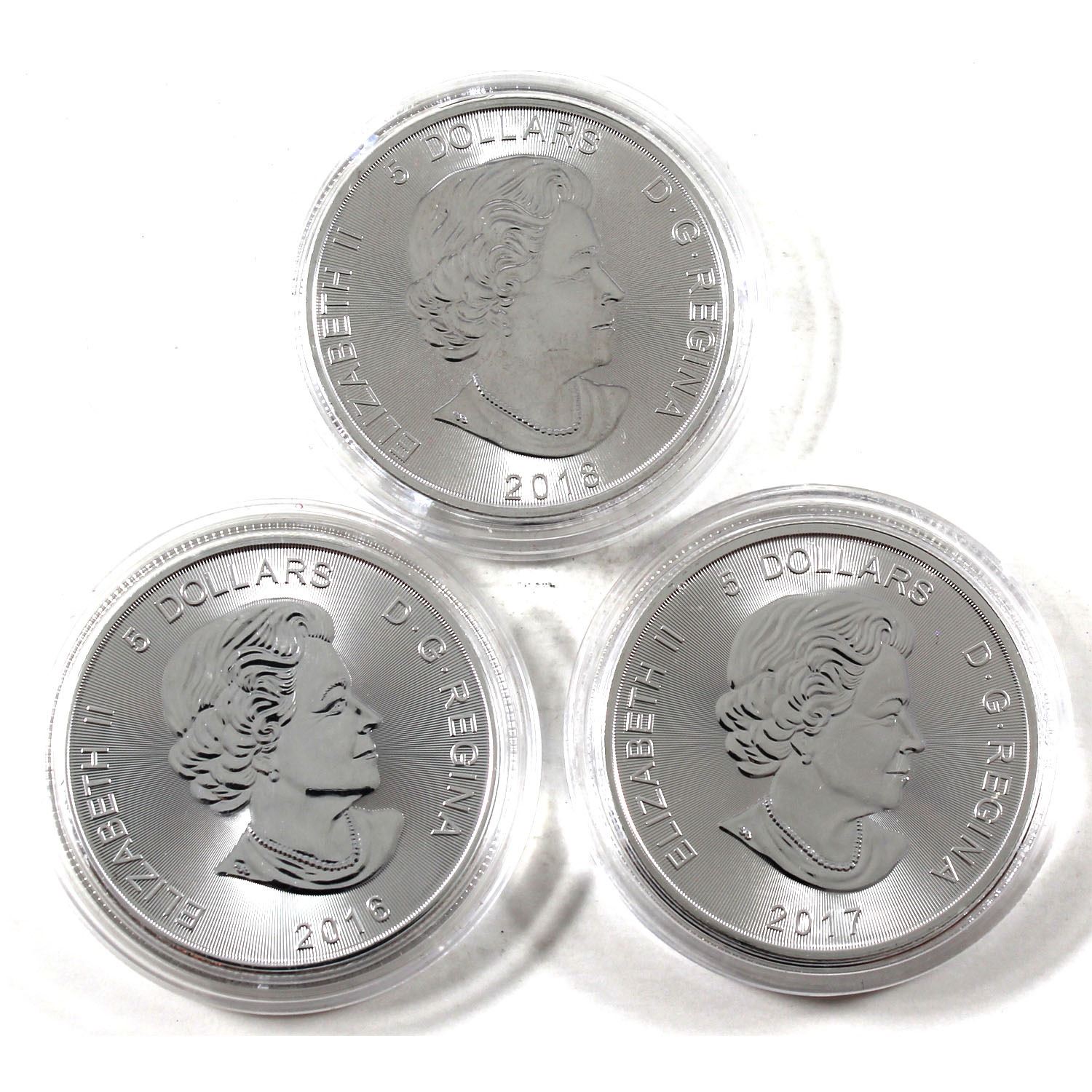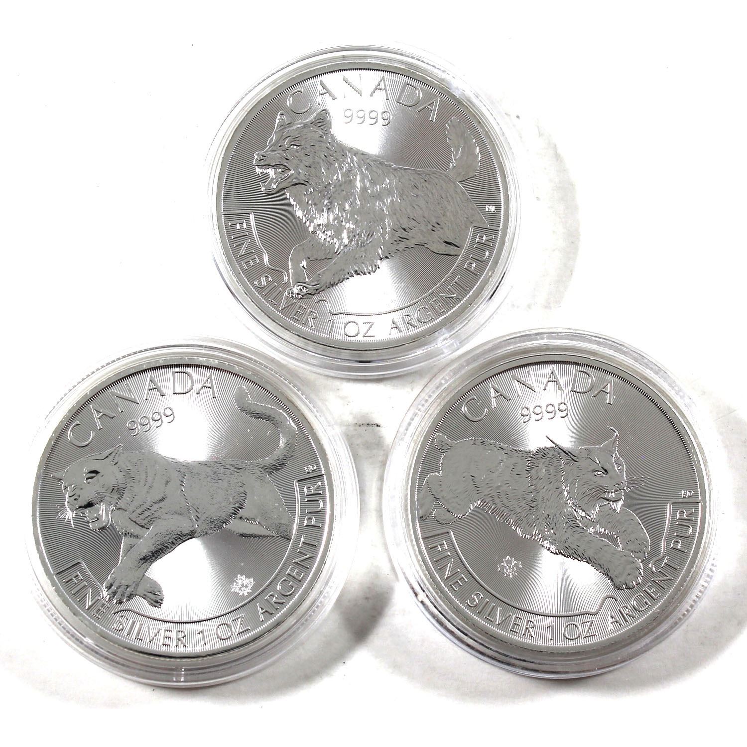 2016-2018 Canada 1oz Predator Series .9999 Fine Silver Coin in Capsules - 2016 Cougar, 2017 Lynx & 2018 Wolf. 3pcs (TAX Exempt)