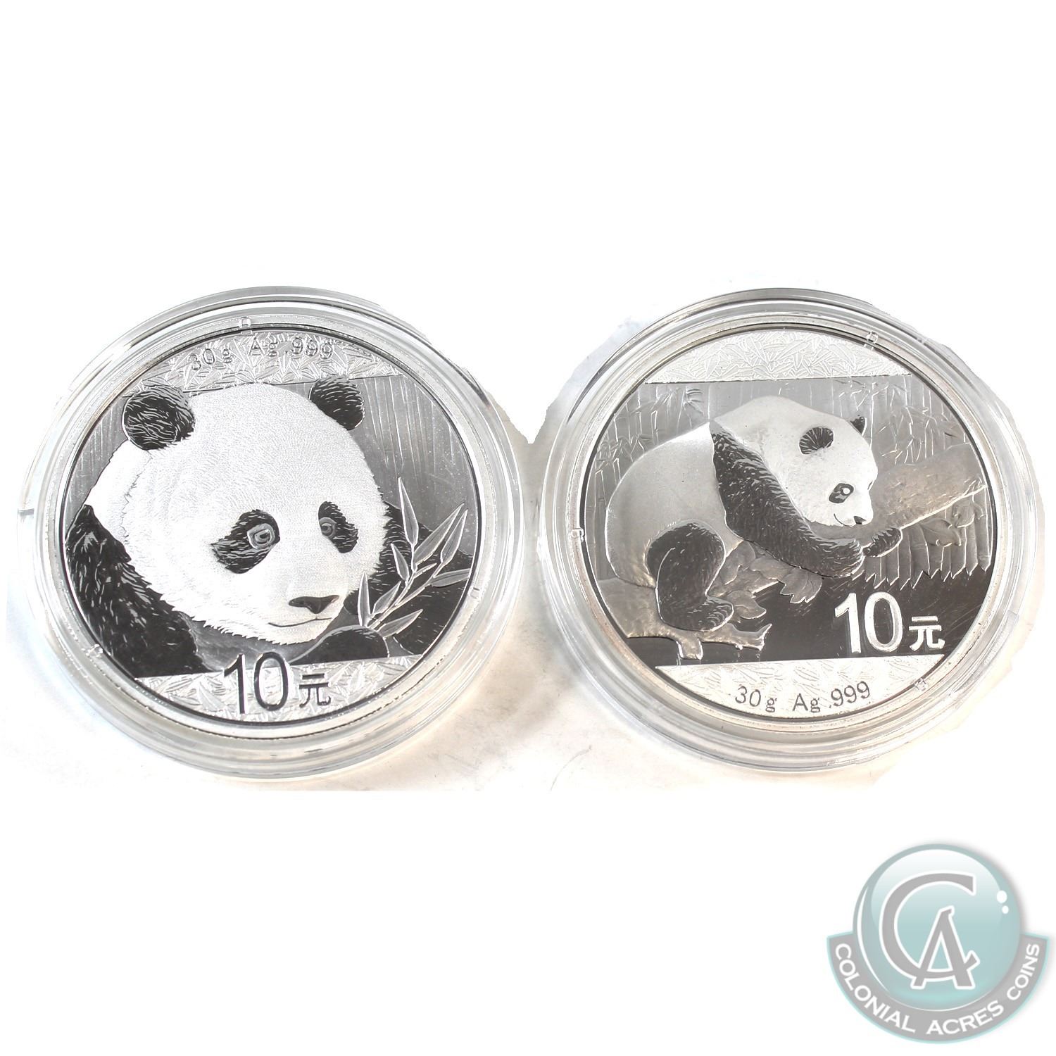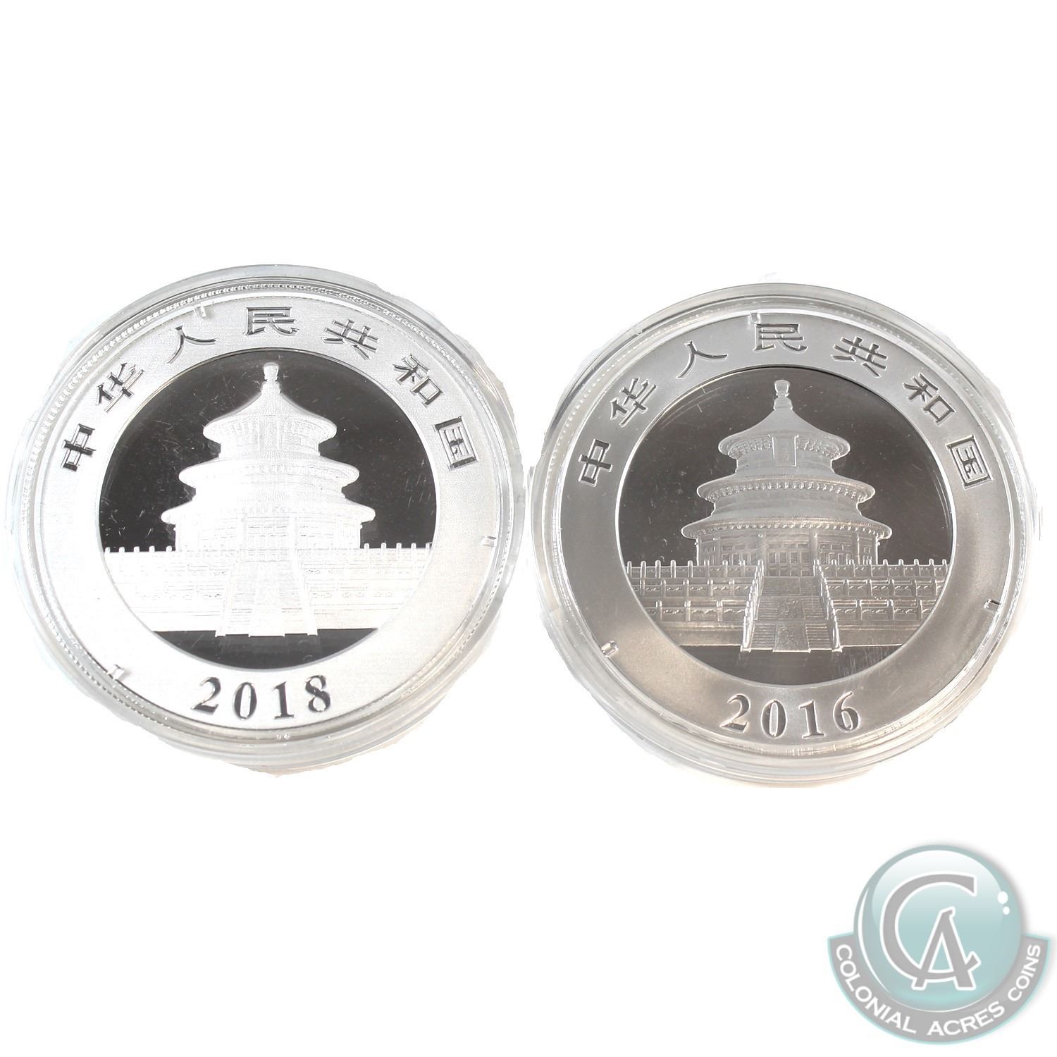 2016 & 2018 China 30g .999 Fine Silver Pandas in Capsules. 2pcs (TAX Exempt)