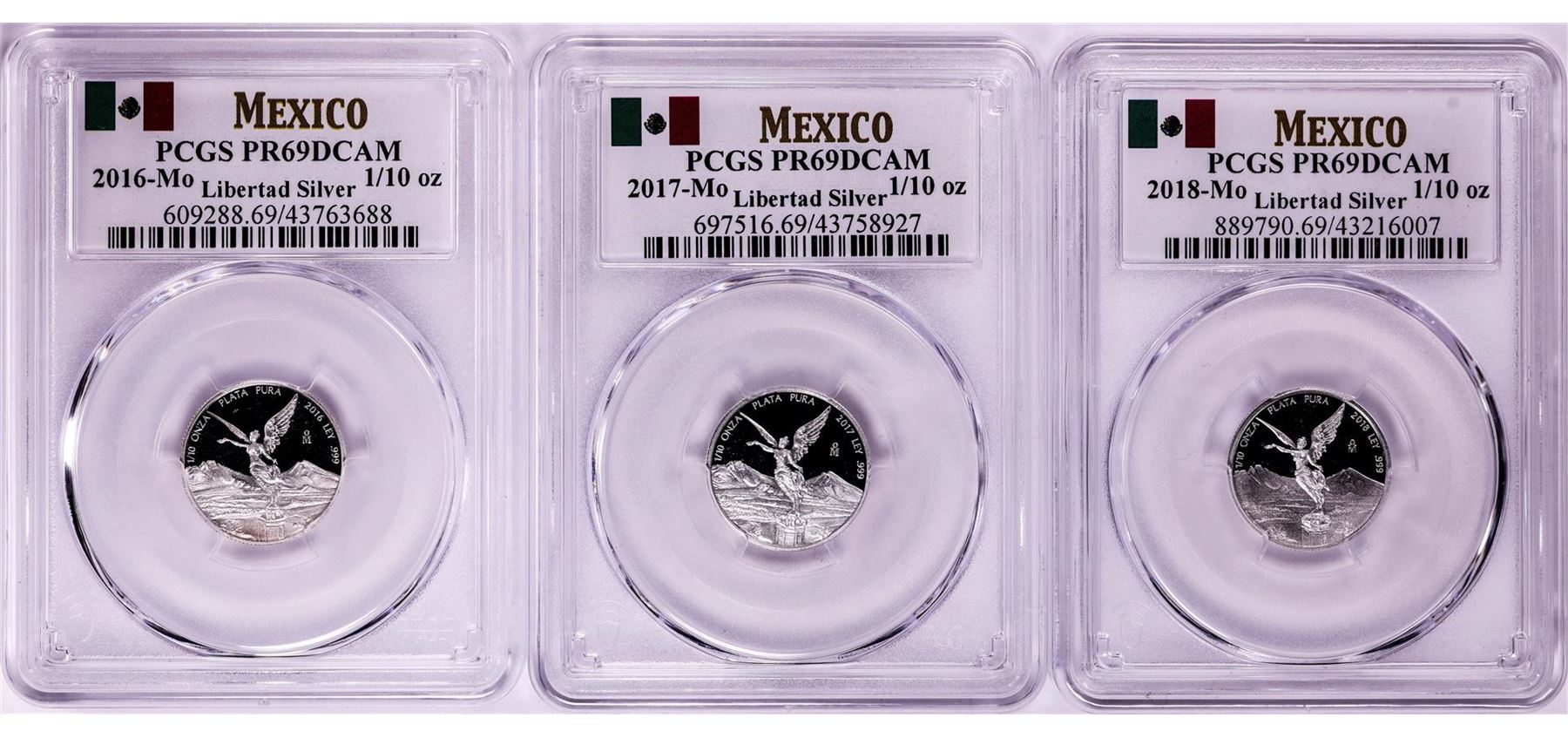 2016-2018-Mo Mexico Proof 1/10 oz Silver Libertad Coins PCGS PR69DCAM
