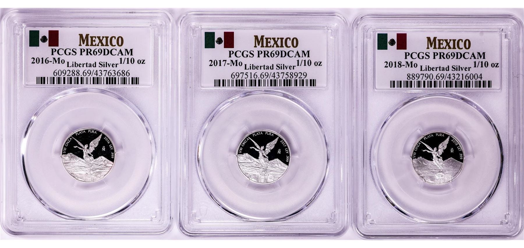 2016-2018-Mo Mexico Proof 1/10 oz Silver Libertad Coins PCGS PR69DCAM