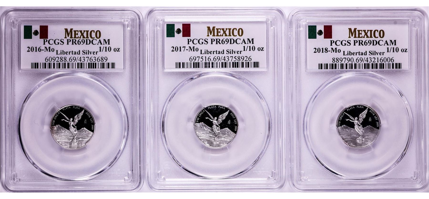 2016-2018-Mo Mexico Proof 1/10 oz Silver Libertad Coins PCGS PR69DCAM