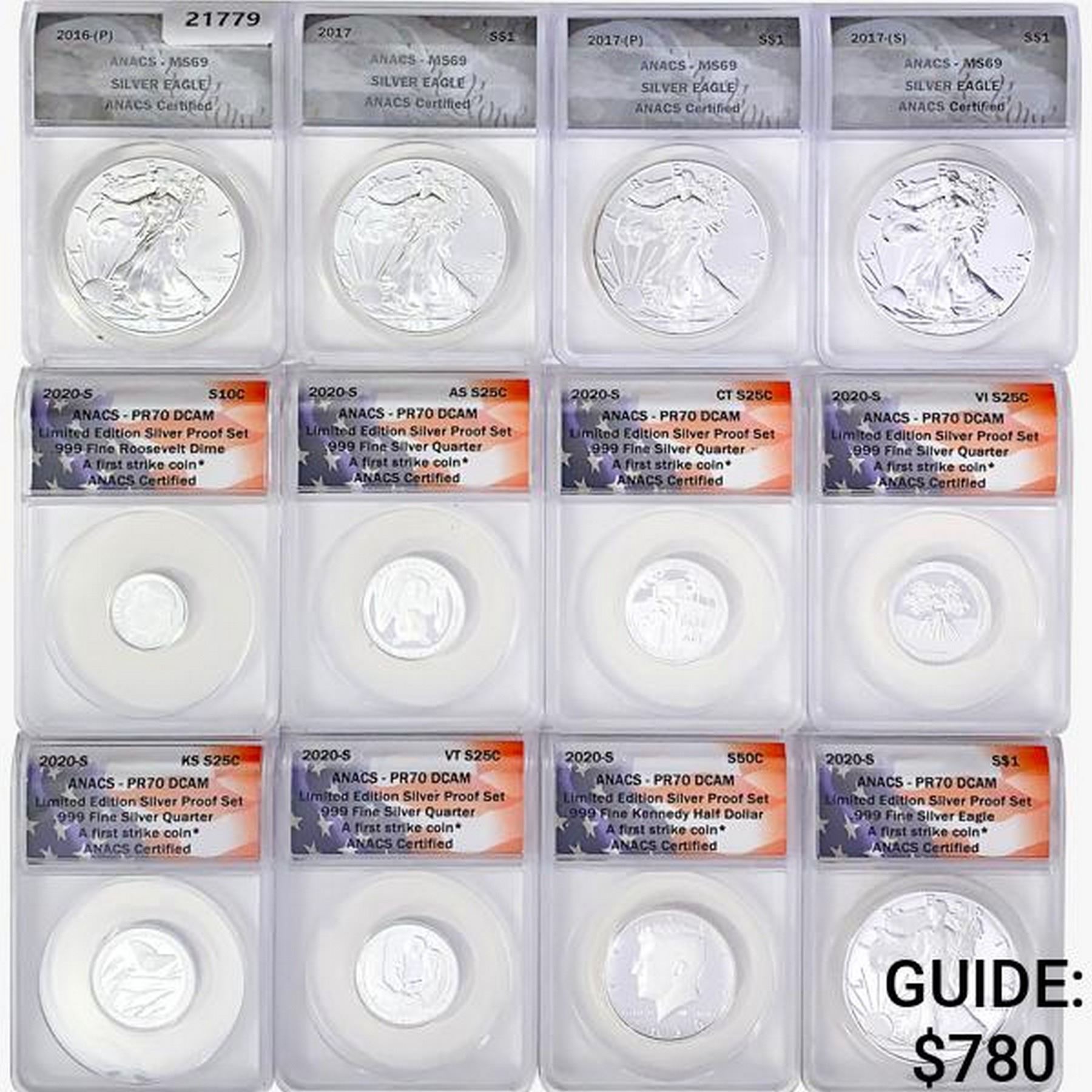 2016-2020 [12] US Varied Silver Coinage ANACS MS/P