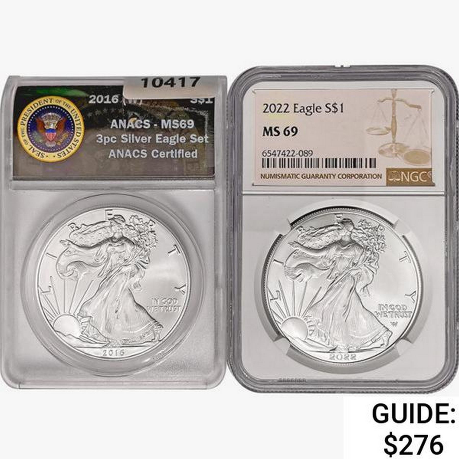 2016 & 2022 Silver Eagle NGC,ANACS MS69 2016-2022