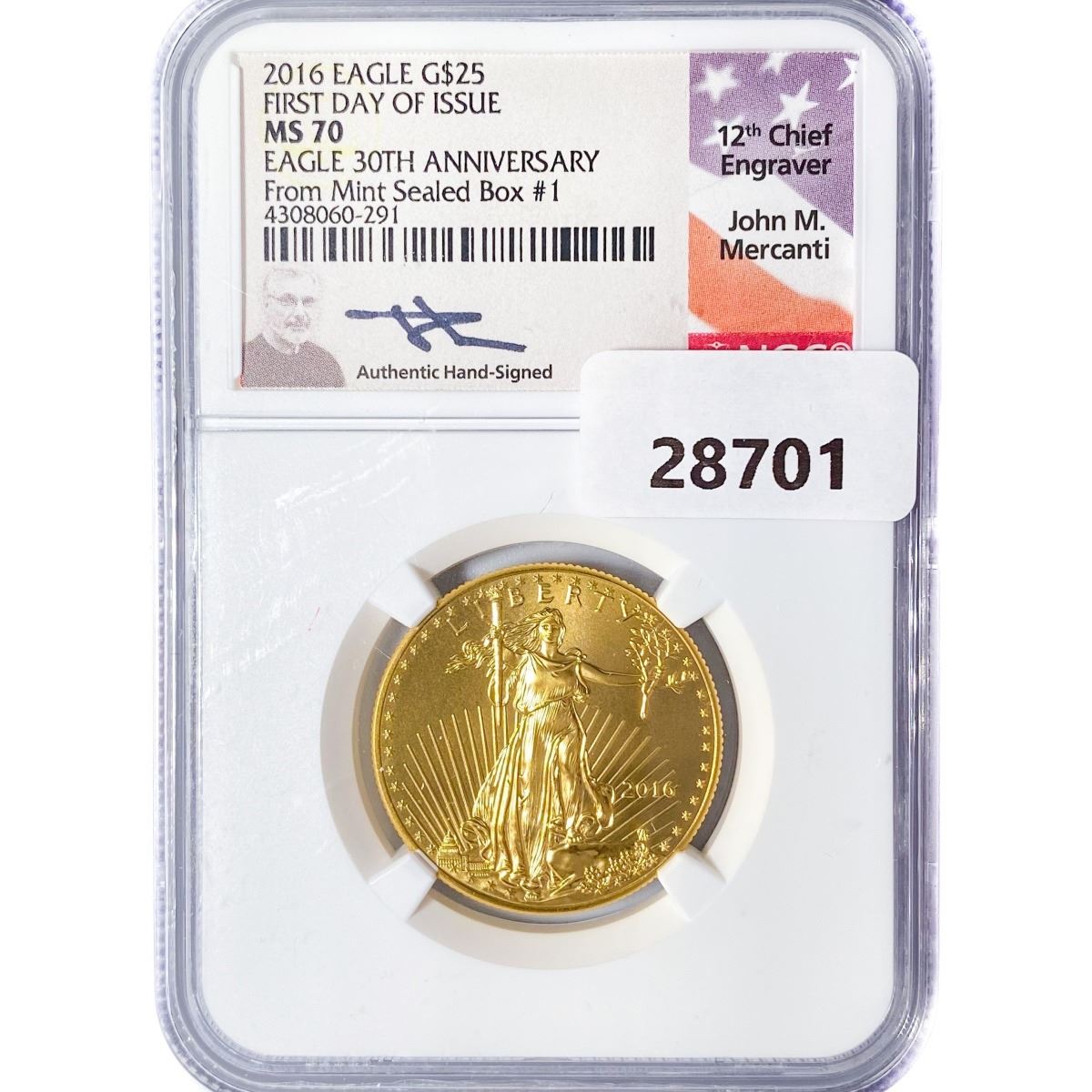 2016 $25 1/2oz AGE Mercanti Signed NGC MS70 30th
