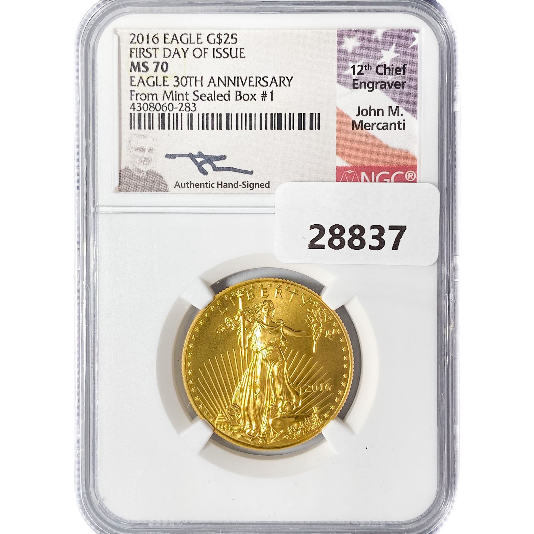 2016 $25 1/2oz AGE Mercanti Signed NGC MS70 30th