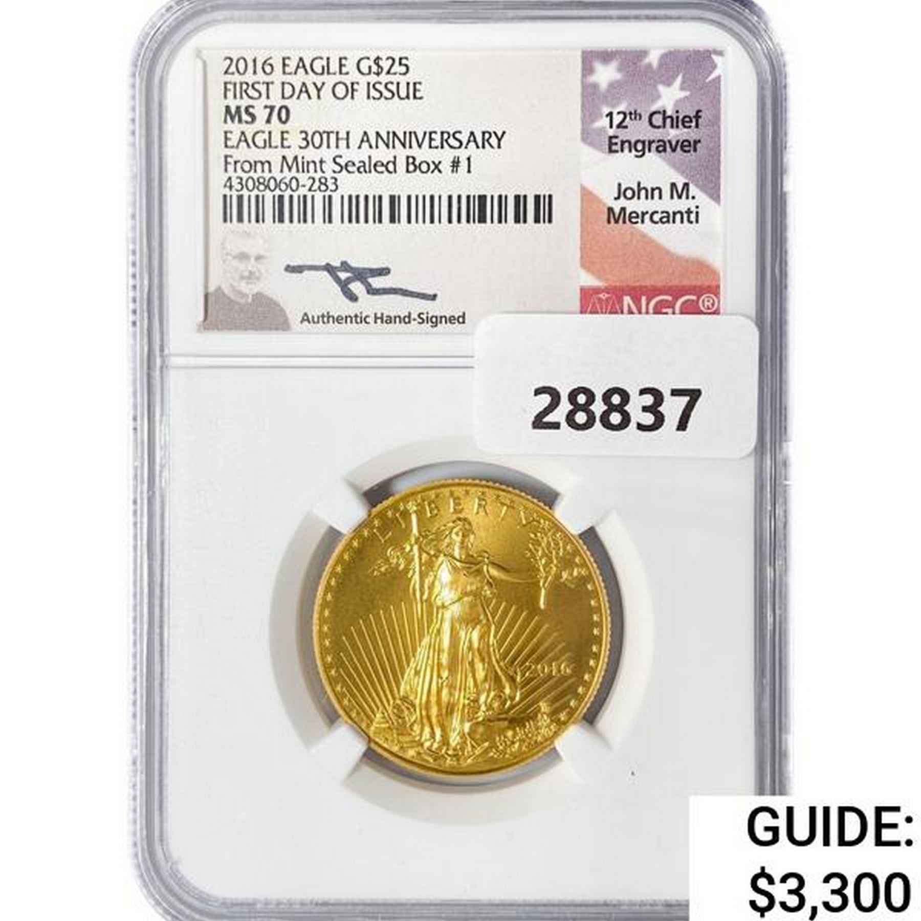 2016 $25 1/2oz AGE Mercanti Signed NGC MS70 30th