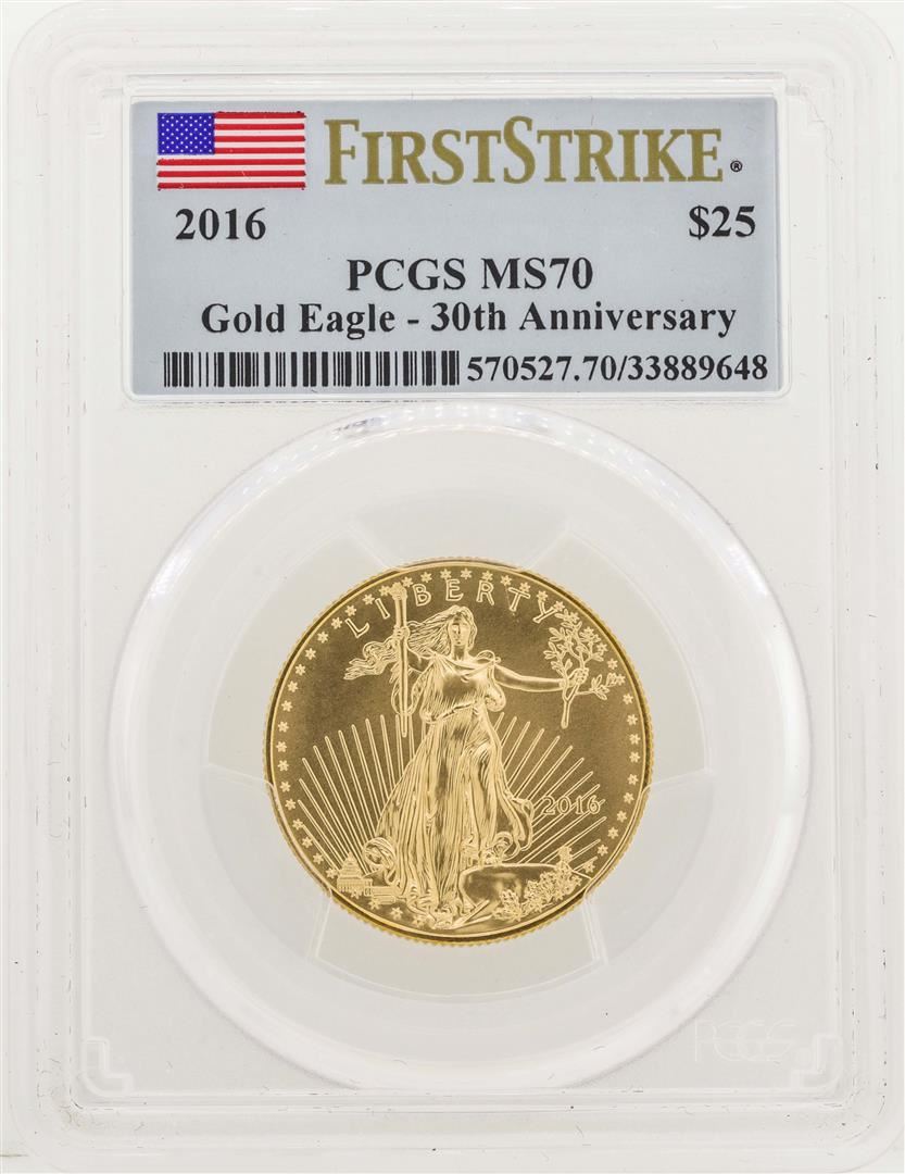 One 2016 $25 American Gold Eagle Coin PCGS MS70 30th Anniversary First Strike. PCGS Graded.