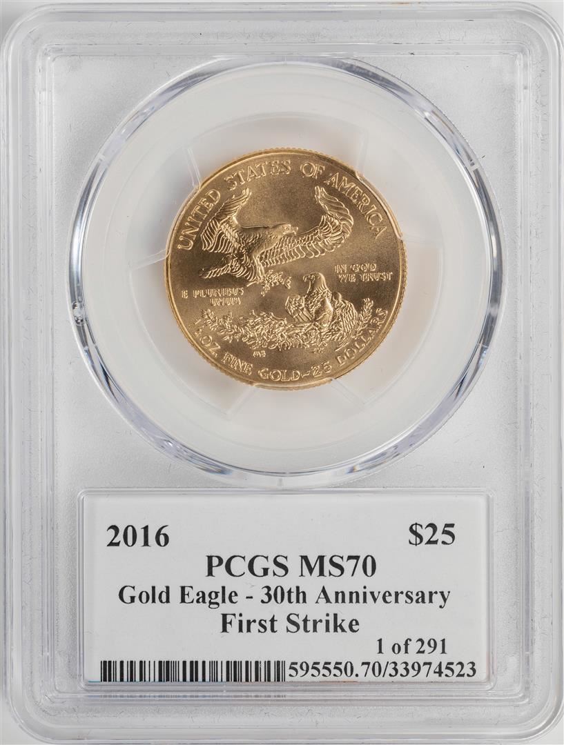 One 2016 $25 American Gold Eagle Coin PCGS MS70 First Strike Edmund C. Moy Signature. PCGS Graded.