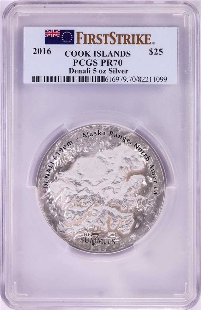 2016 $25 Proof Cook Islands Denali 5oz Silver Coin PCGS PR70 First Strike