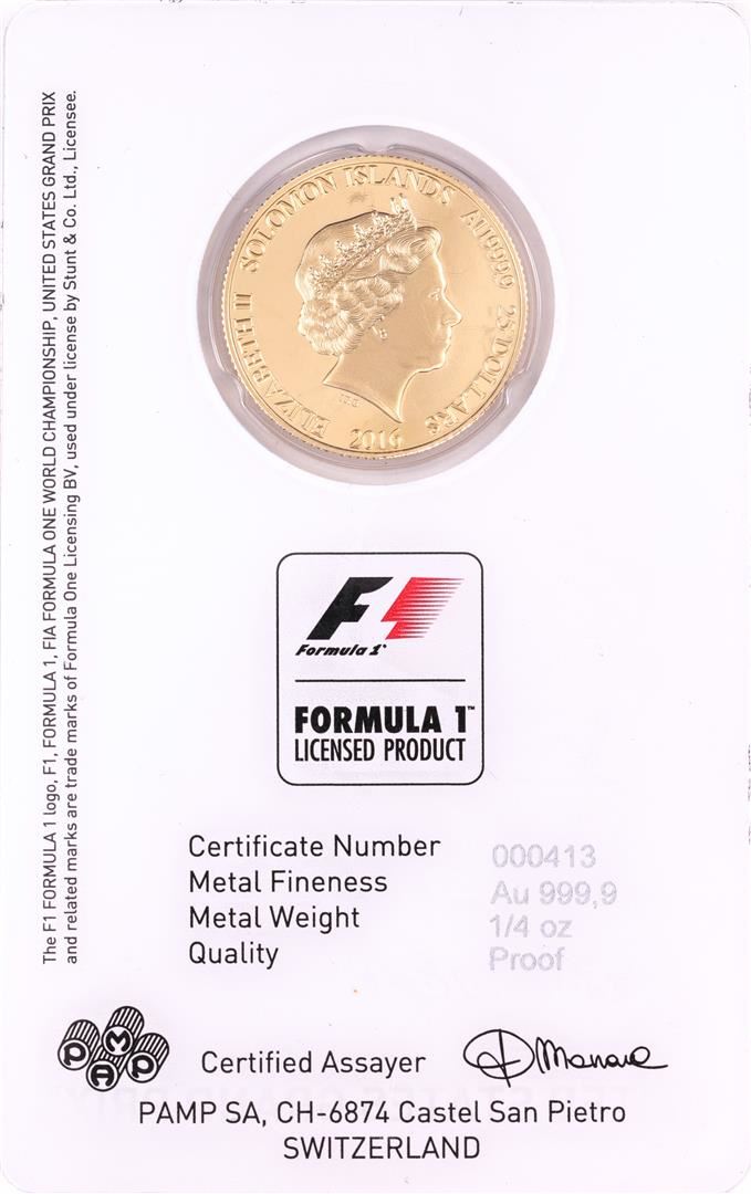 One 2016 $25 Proof Solomon Islands Formula One United States Grand Prix Gold Coin.