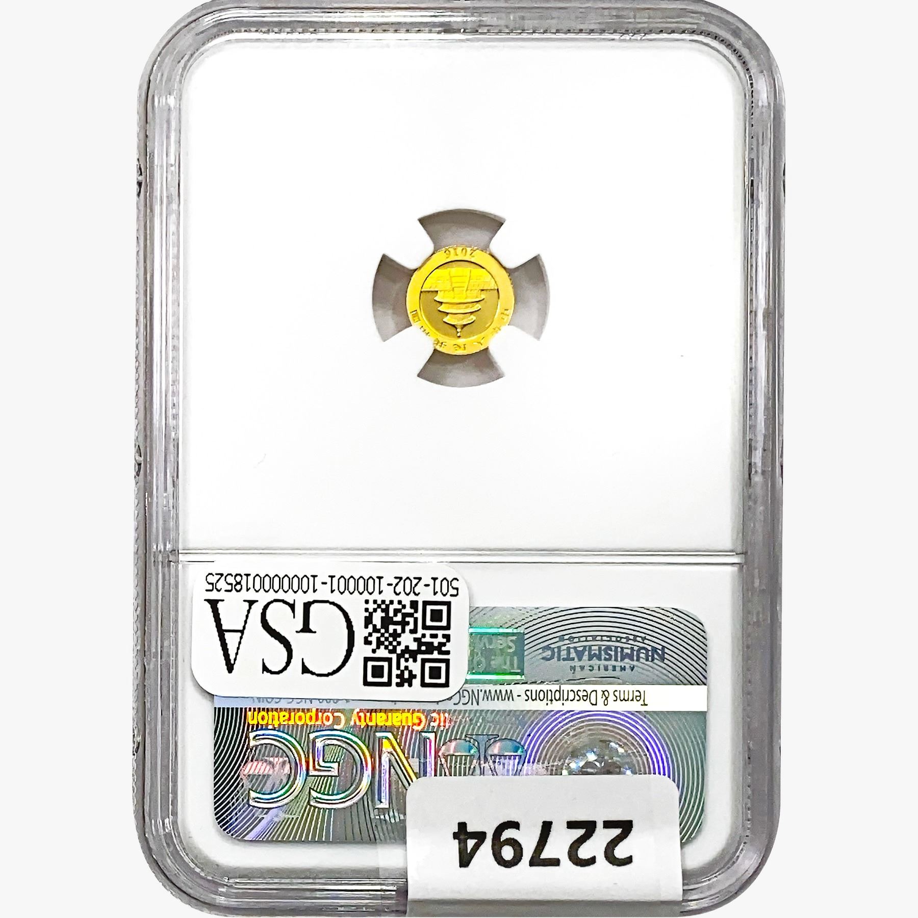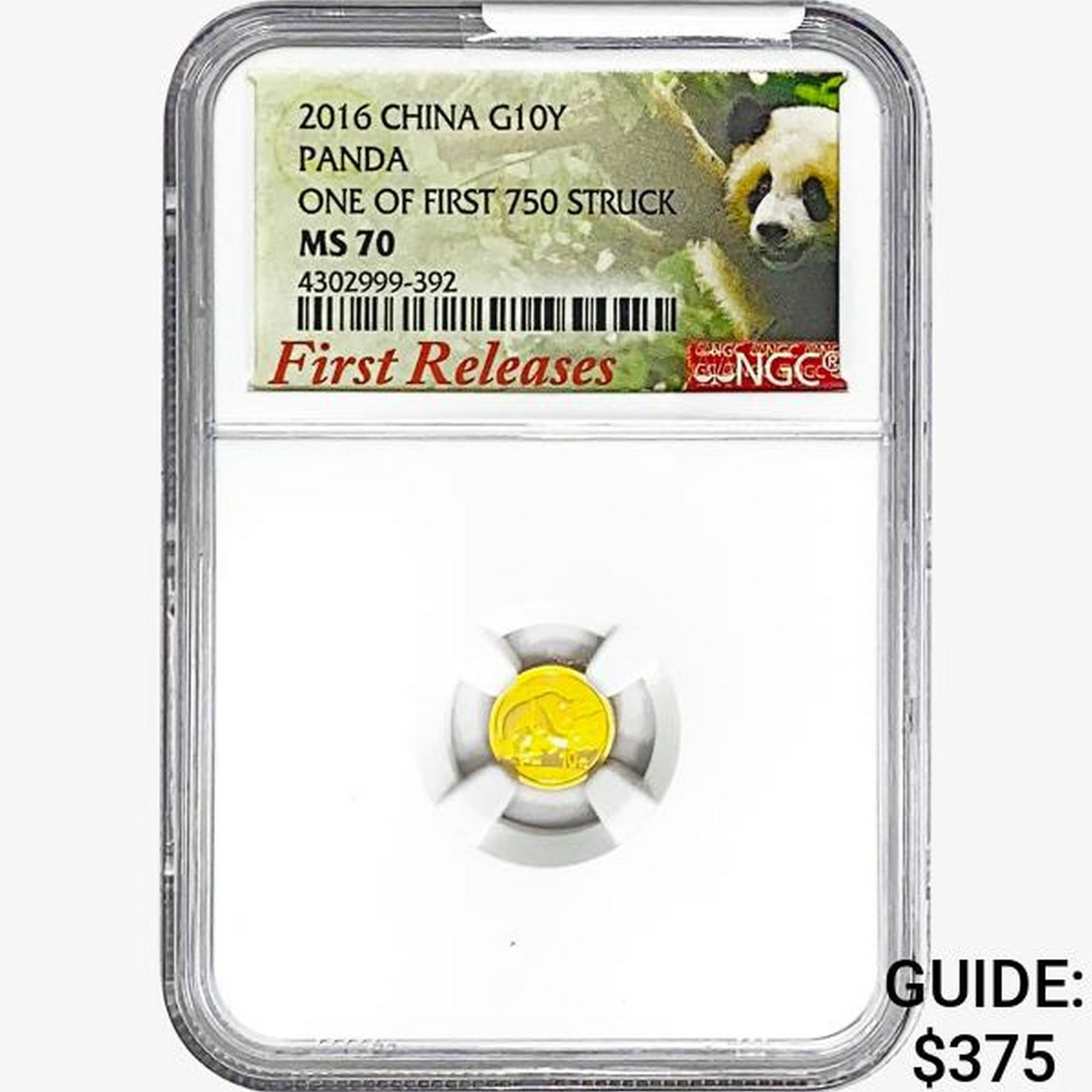 2016 .3215oz. Gold 10 Yuan China Panda NGC MS70