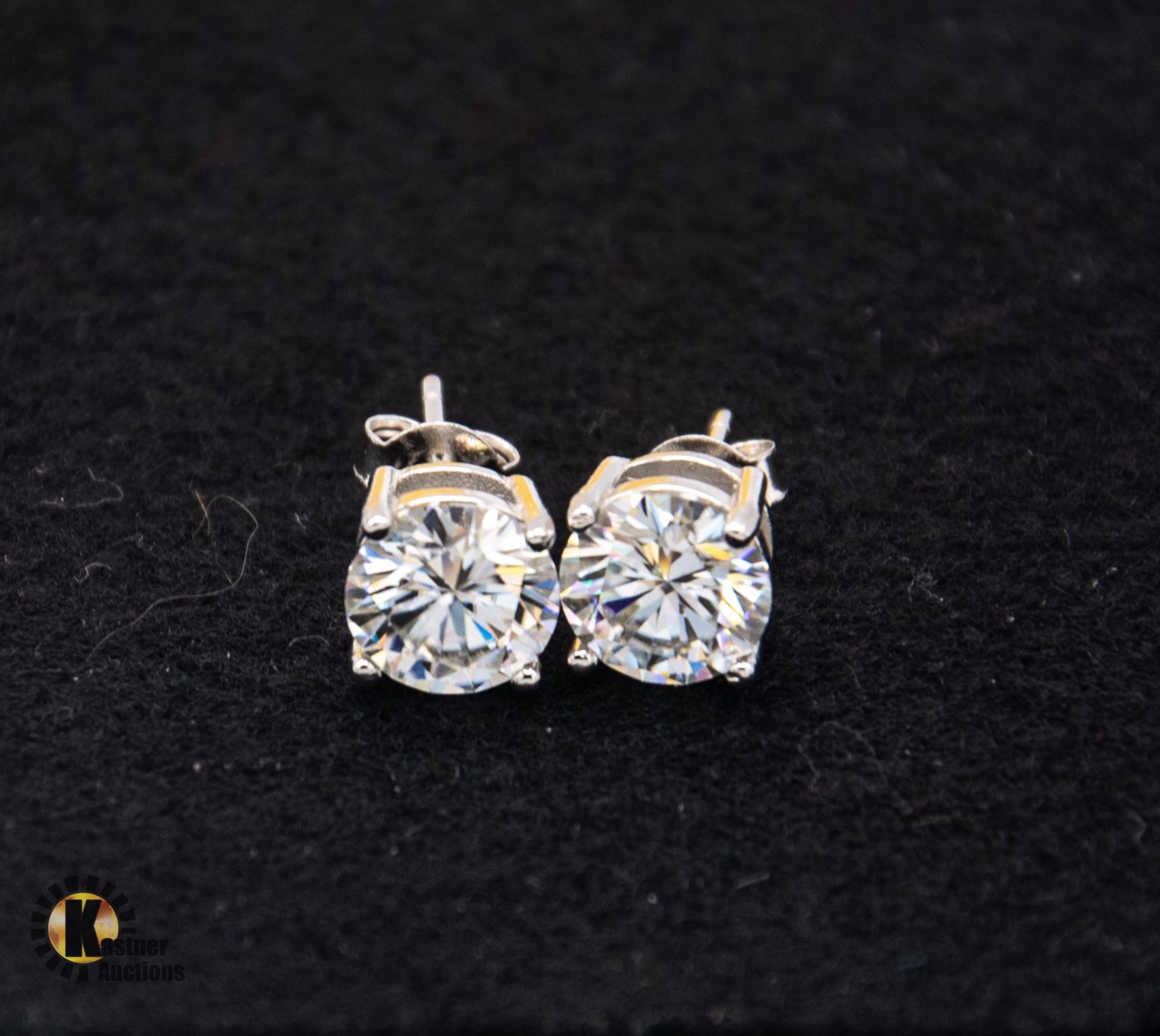 BRILLIANT CUT MOISSANITE STONES VVS D COLOR SET IN CENTER OF 4 CLAW BASKET HEAD SET IN 925 SILVER EARRINGS COMES WITH GIFT BOX