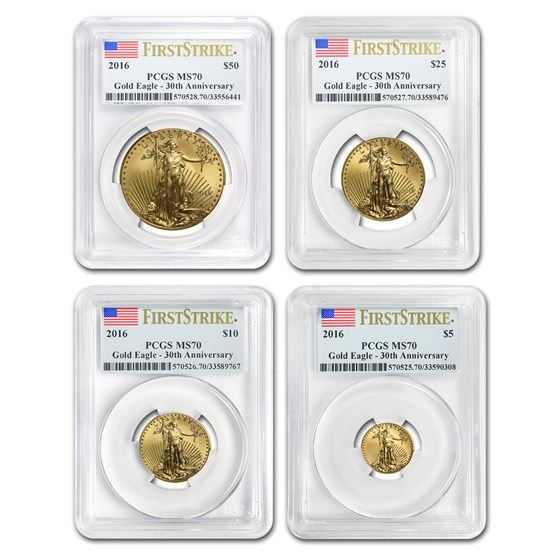 One piece 2016 4-Coin Gold American Eagle Set MS-70 PCGS (FS)