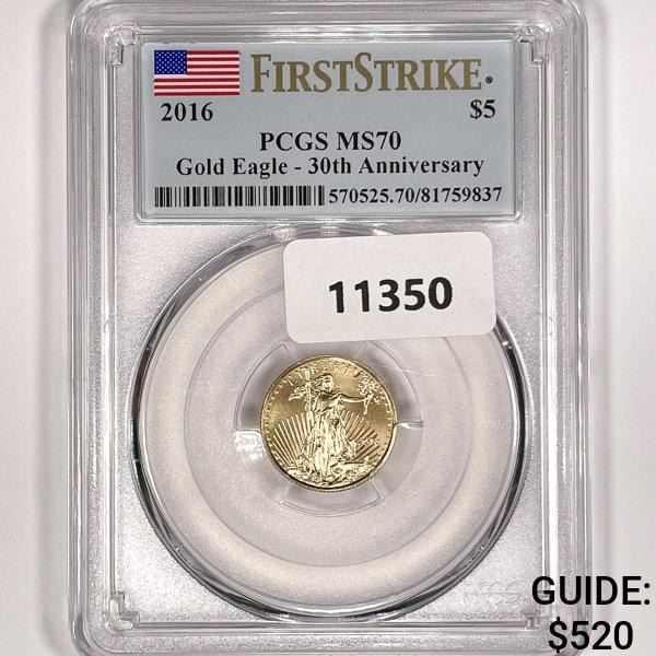 2016 $5 1/10oz American Gold Eagle PCGS-MS70
