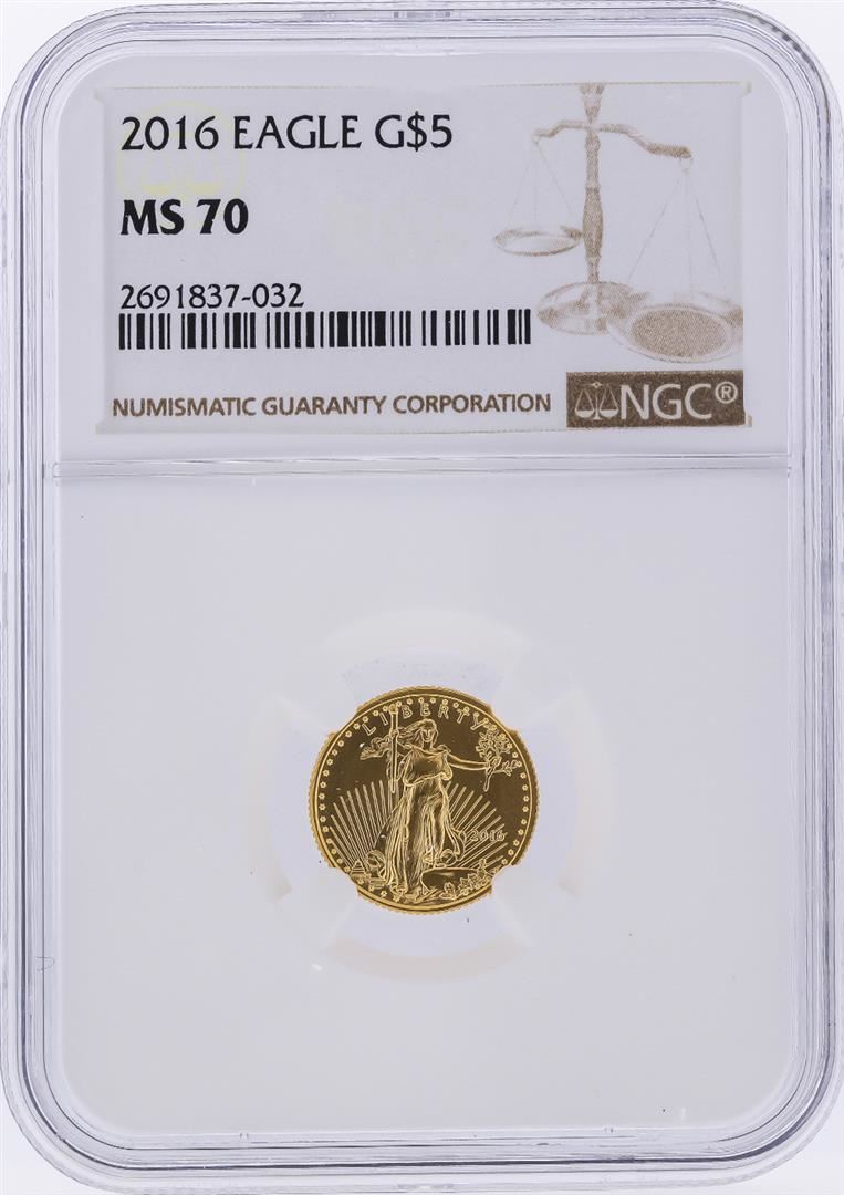 One 2016 $5 American Gold Eagle Coin NGC Graded MS70. NGC Certified.