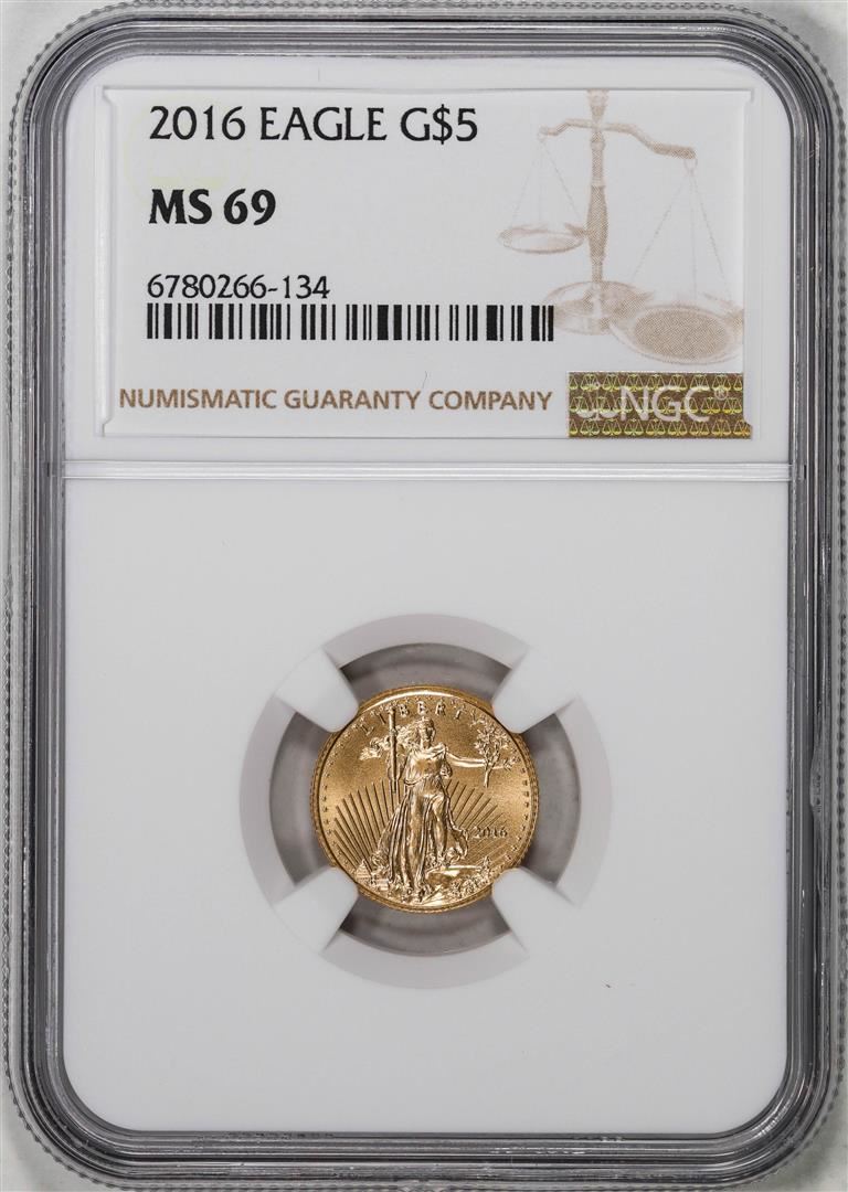 One 2016 $5 American Gold Eagle Coin NGC MS69. NGC Certified.