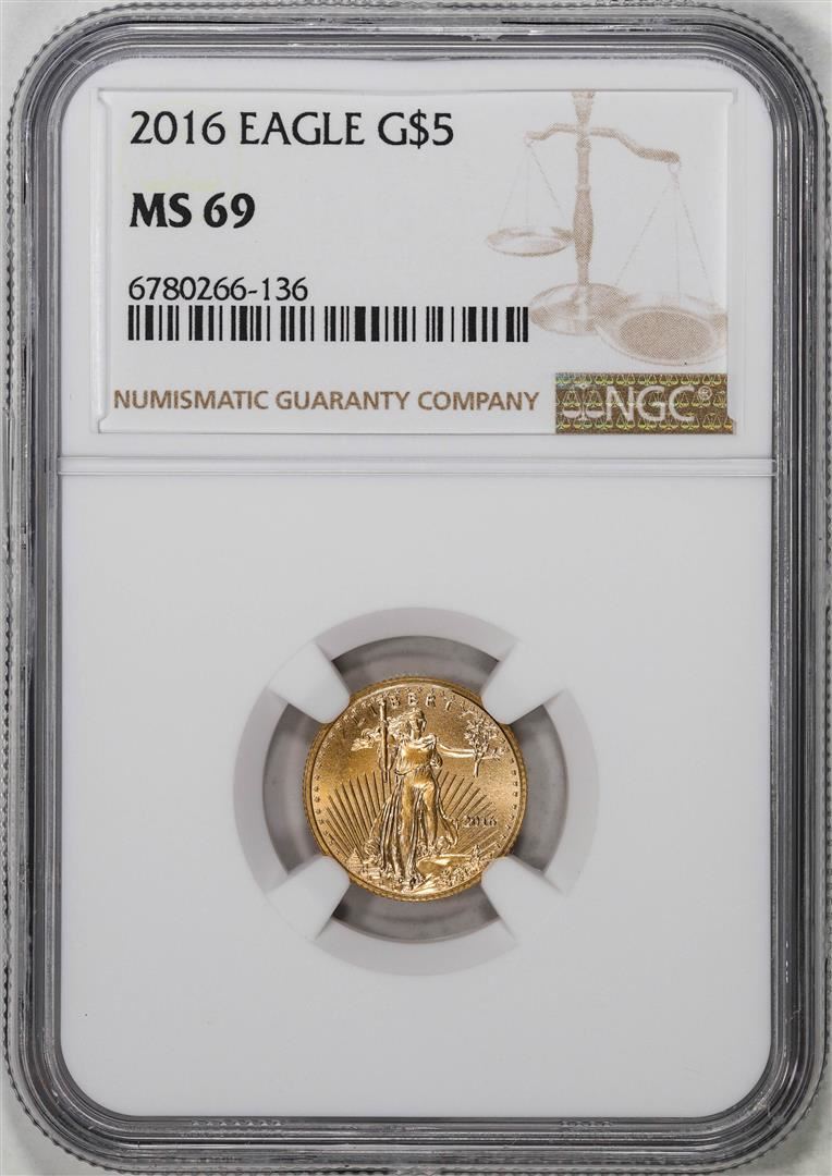 One 2016 $5 American Gold Eagle Coin NGC MS69. NGC Certified.