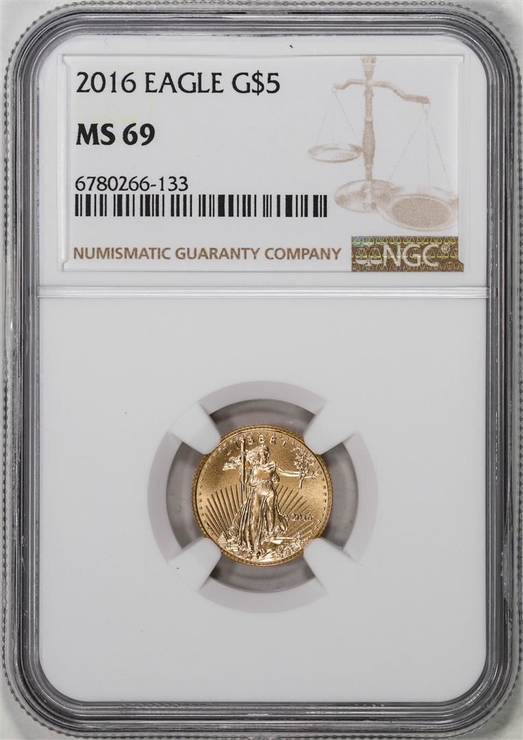 One 2016 $5 American Gold Eagle Coin NGC MS69. NGC Certified.