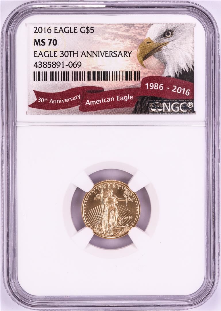 One 2016 $5 American Gold Eagle Coin NGC MS70. NGC Certified.