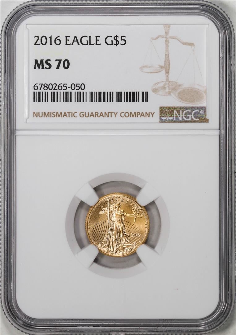 One 2016 $5 American Gold Eagle Coin NGC MS70. NGC Certified.