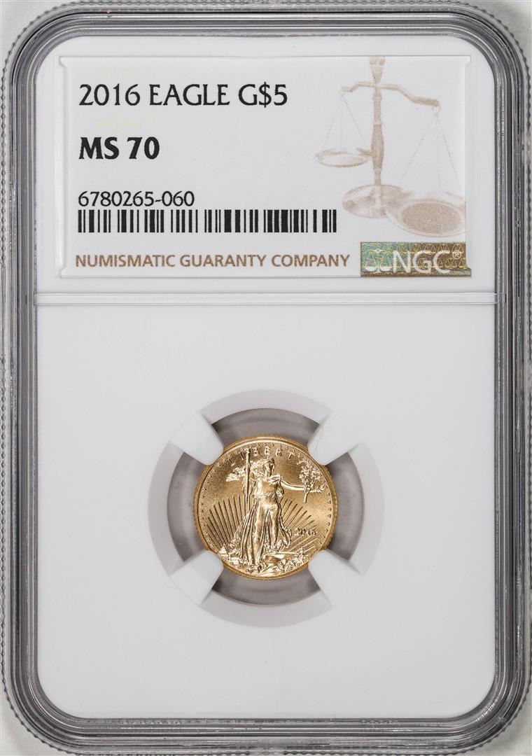 One 2016 $5 American Gold Eagle Coin NGC MS70. NGC Certified.