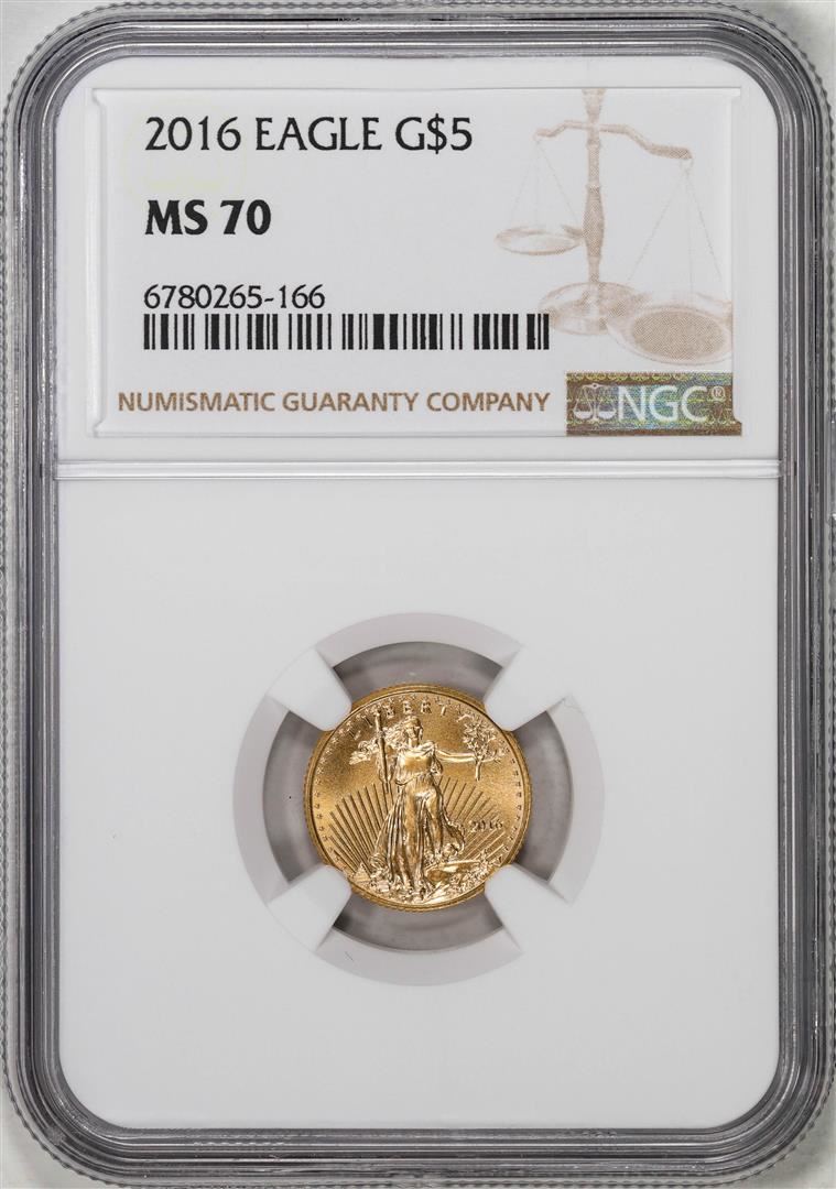 One 2016 $5 American Gold Eagle Coin NGC MS70. NGC Certified.