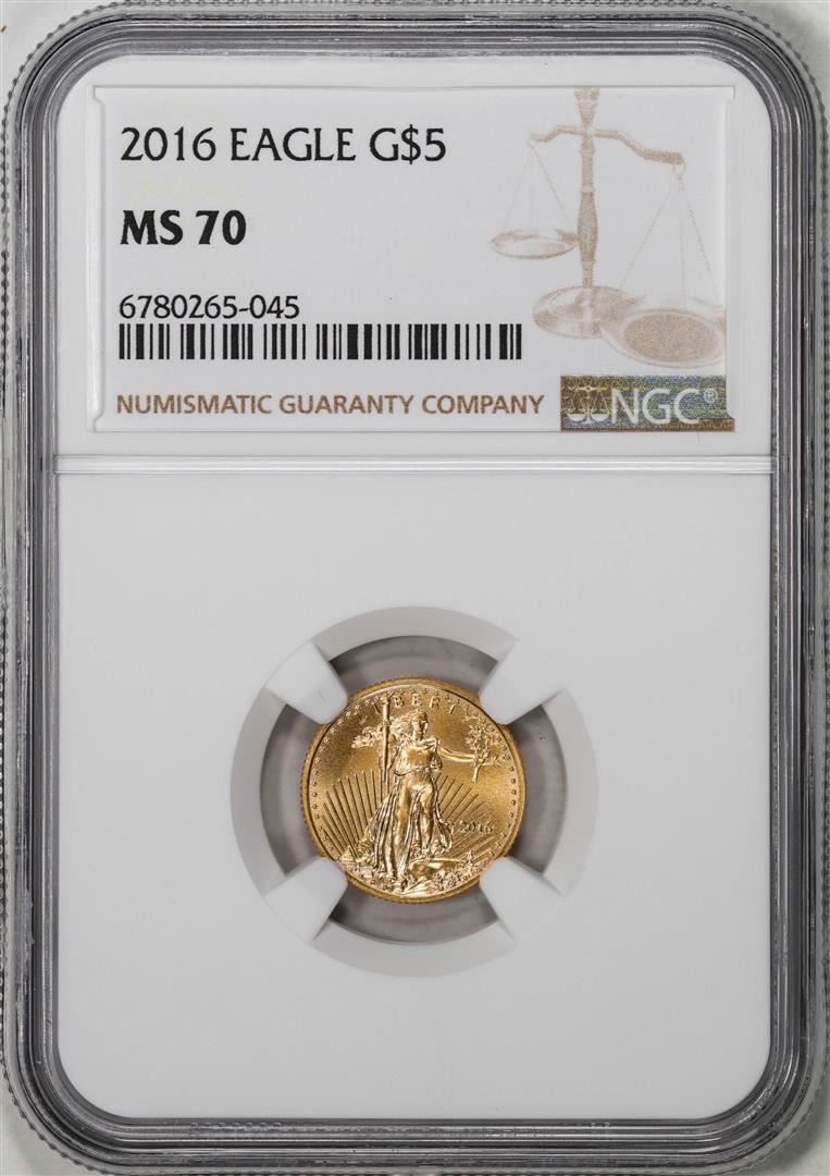 One 2016 $5 American Gold Eagle Coin NGC MS70. NGC Certified.
