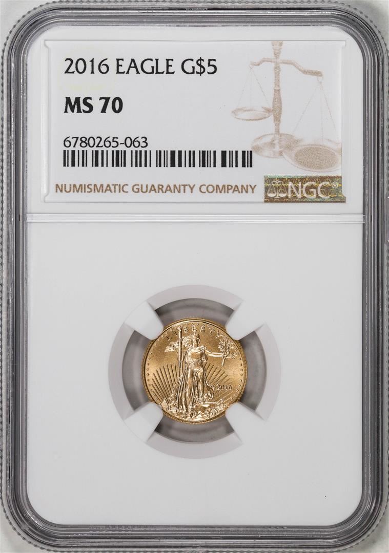 One 2016 $5 American Gold Eagle Coin NGC MS70. NGC Certified.