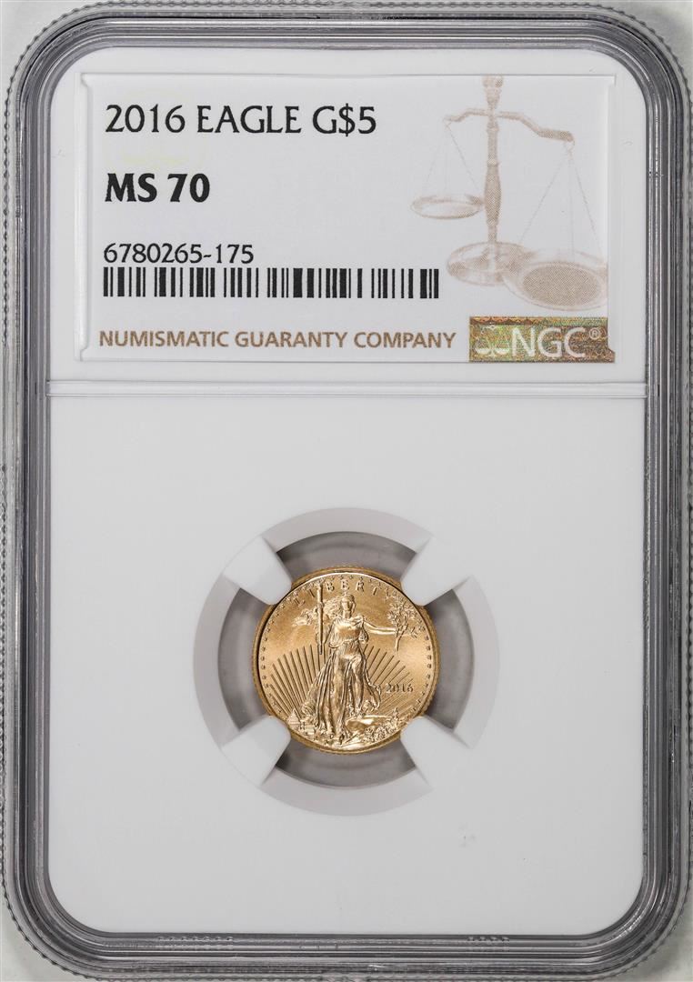 One 2016 $5 American Gold Eagle Coin NGC MS70. NGC Certified.