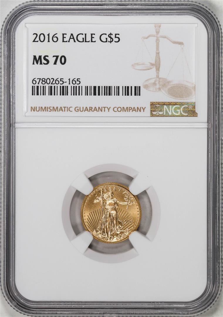 One 2016 $5 American Gold Eagle Coin NGC MS70. NGC Certified.