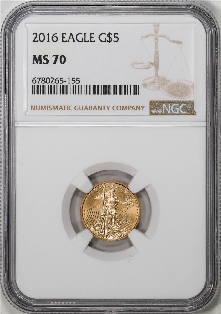 One 2016 $5 American Gold Eagle Coin NGC MS70. NGC Certified.
