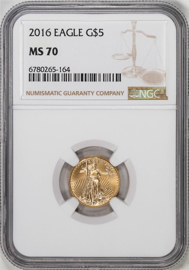 One 2016 $5 American Gold Eagle Coin NGC MS70. NGC Certified.