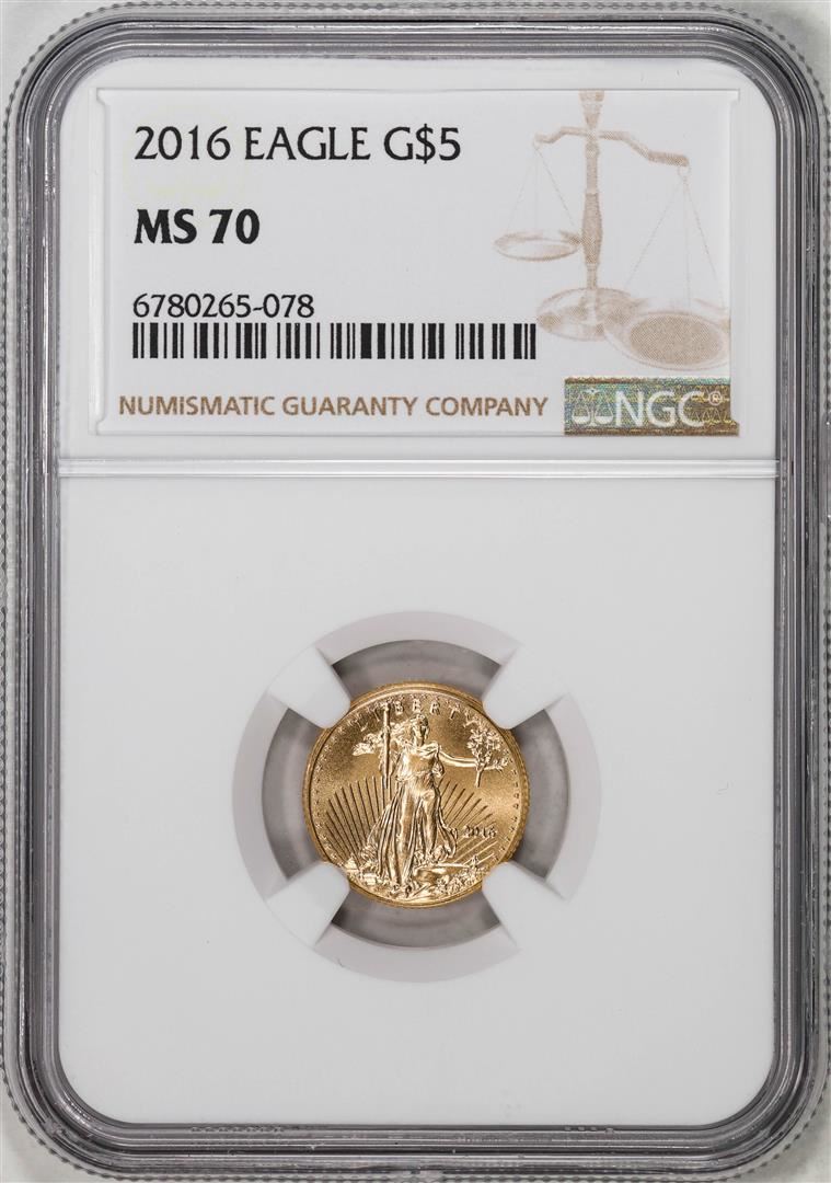 One 2016 $5 American Gold Eagle Coin NGC MS70. NGC Certified.