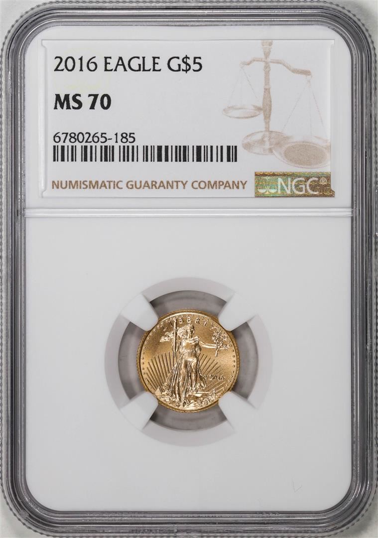 One 2016 $5 American Gold Eagle Coin NGC MS70. NGC Certified.