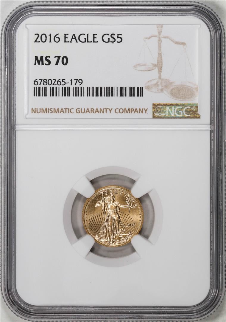 One 2016 $5 American Gold Eagle Coin NGC MS70. NGC Certified.